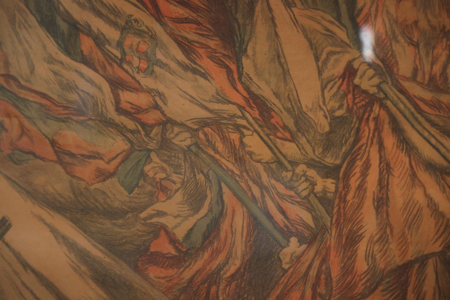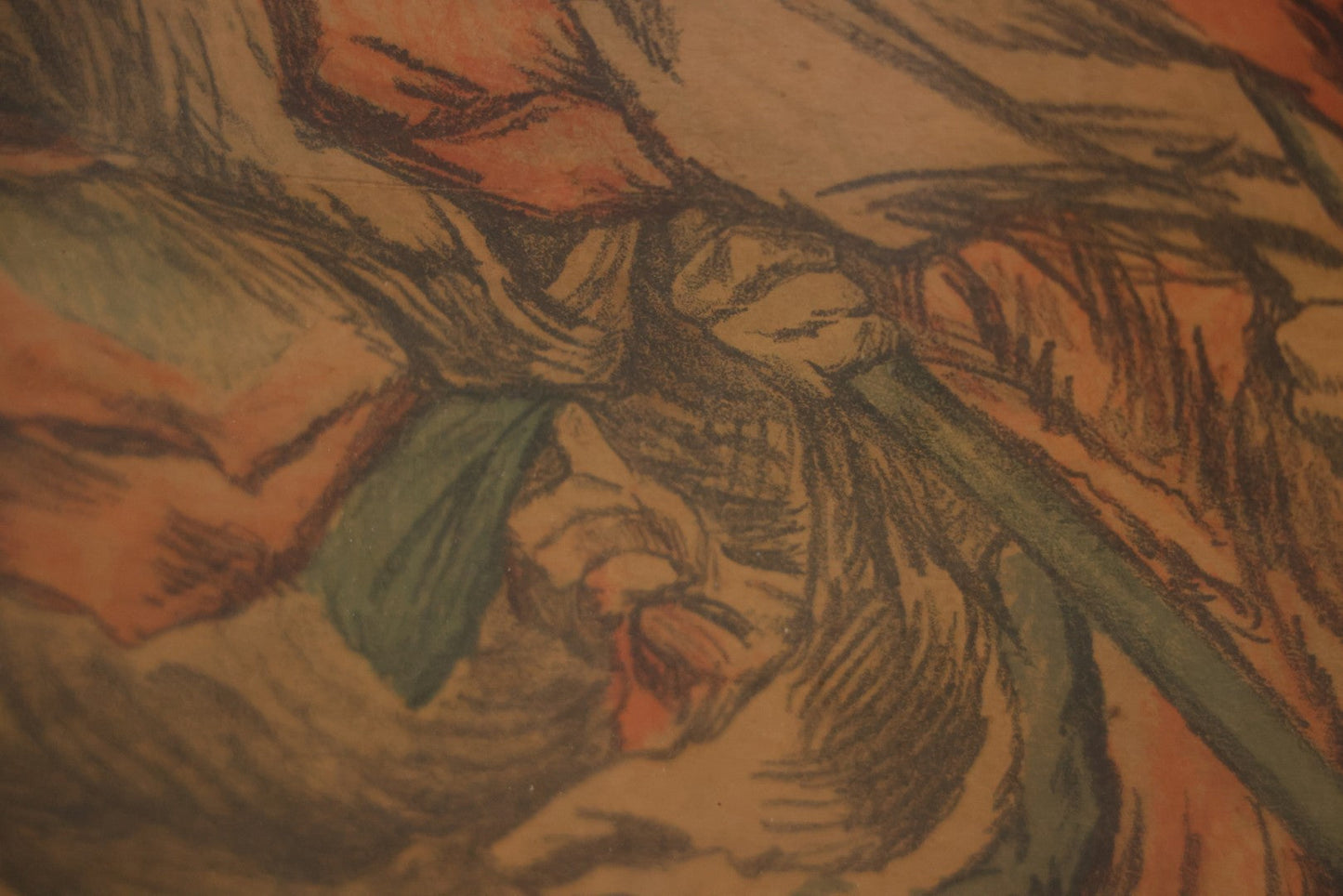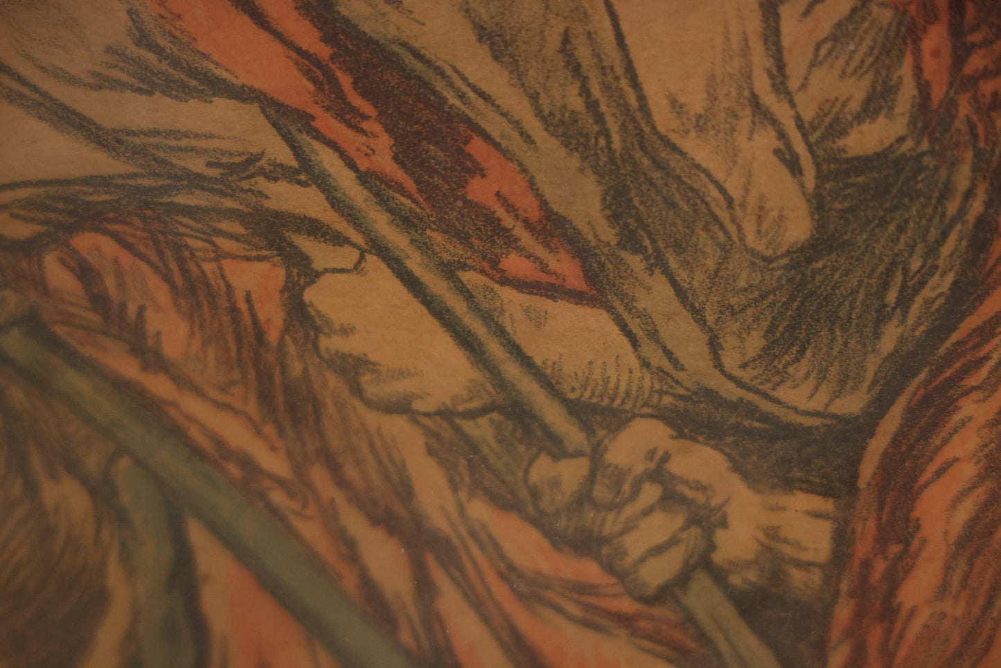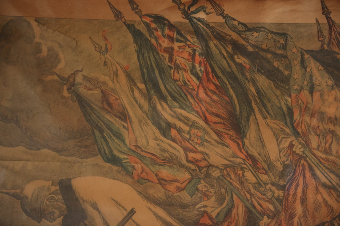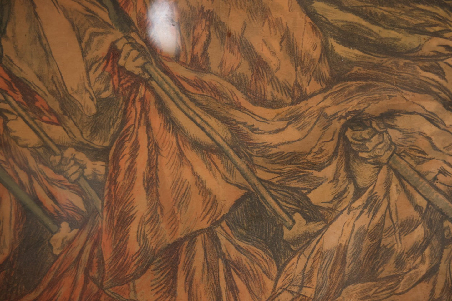 Antique World War I French Propaganda Lithograph Poster, "L'Emprunt De La Liberation" (The Liberation Loan), Art By Abel Faivre, In Frame, Note Heavy Wear And Tear, 45-1/2" x 33-1/4"