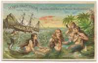 Ayer's Hair Vigor, Lowell, MA Mermaids Antique Lithographed Trade Card