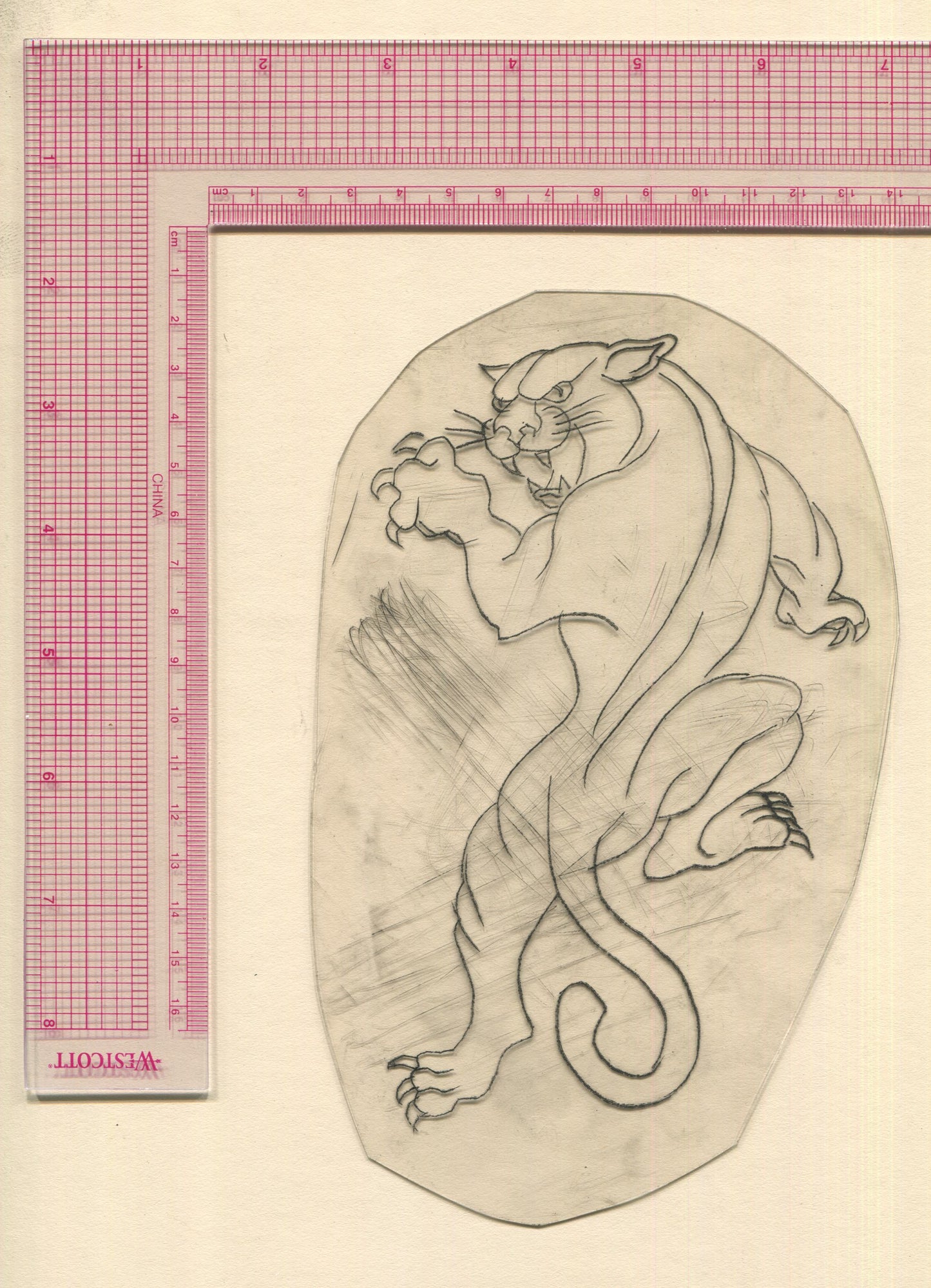 Big Crawling Panther Vintage Traditional Tattoo Acetate Stencil from Bert Grimms