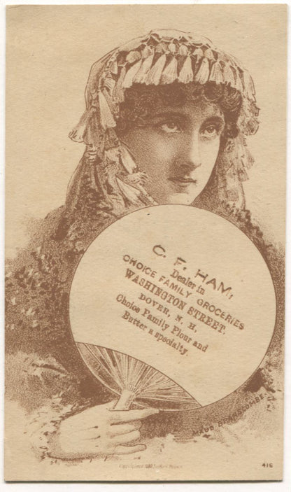C.F. Ham Family Groceries, Dover, NH Antique Lithographed Trade Card