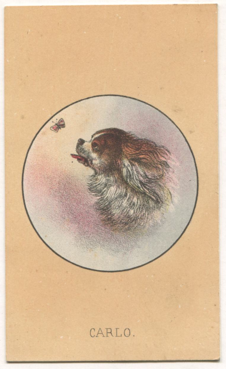 Carlo Dog & Butterfly Antique Lithographed Trade Card