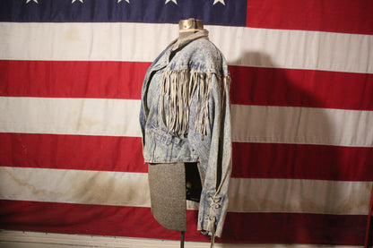 For sale is a vintage Sergio Valente denim jacket with leather tassels, made in Uruguay. The jacket is in good condition with normal signs of wear. Please see photos for the most complete description.