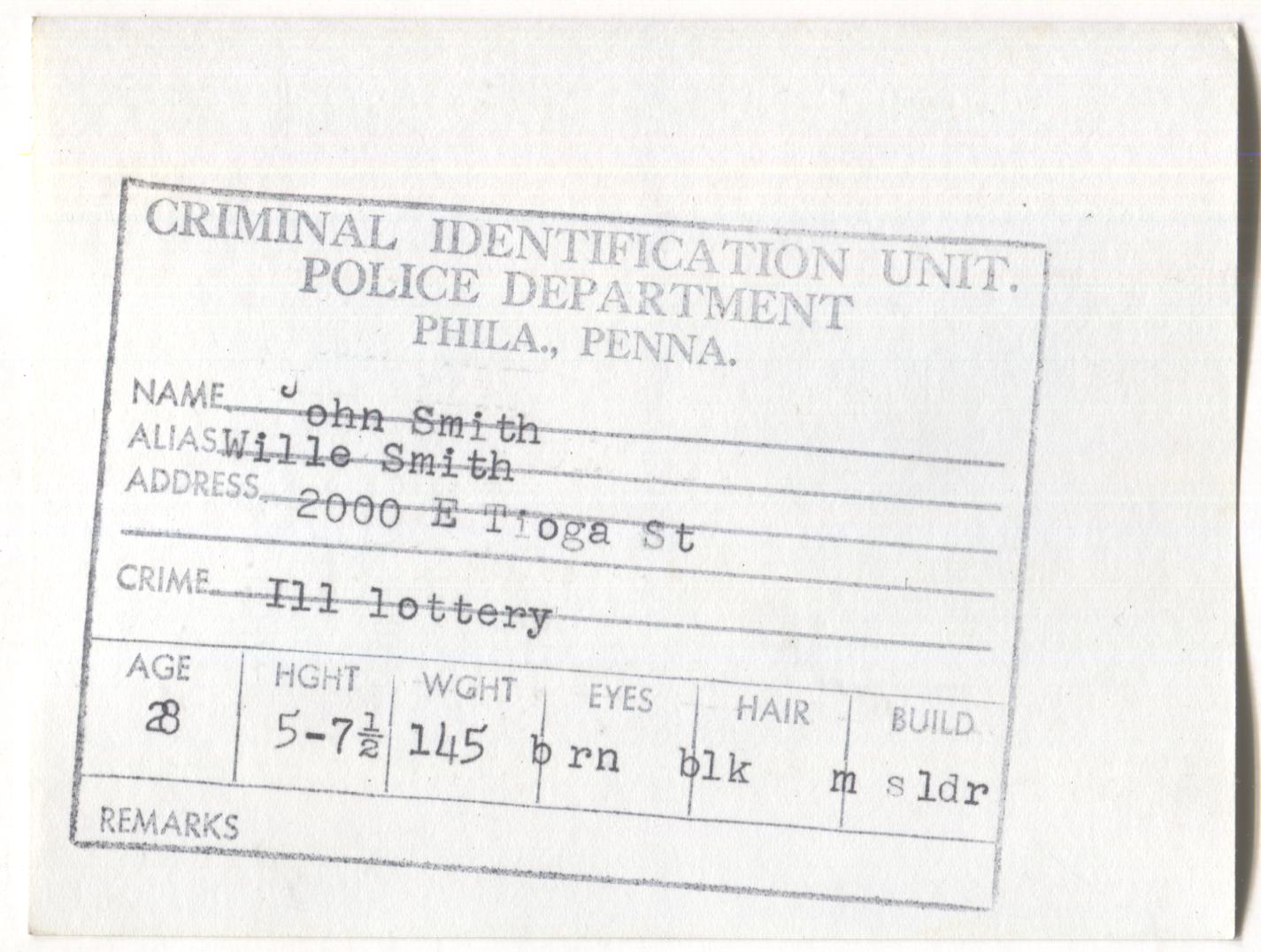 John Smith Mugshot - Arrested on 1/12/1961 for Illegal Lottery