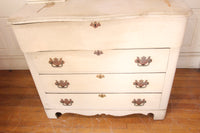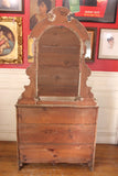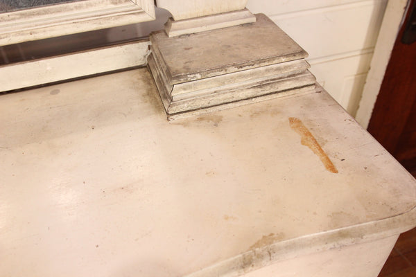 Here is a lovely antique dresser that needs some tender, loving care. This beauty has great bones, but is extremely dirty and worn. Some may like that shabby look, while others may want to clean this piece of years of dirt and dust buildup and staining. It features two glove boxes and a lovely, and quite dirty, swing beveled glass mirror. The four spacious drawers open and close smoothly, but may stick occasionally.