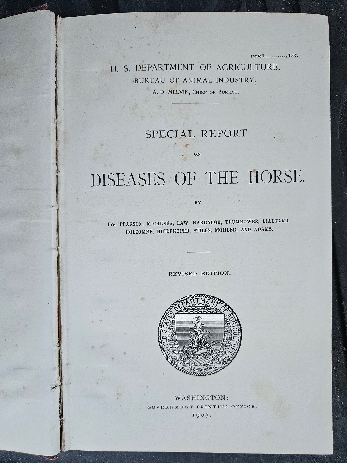 Diseases of the Horse, Department of Agriculture Special Report, 1907 Edition, Illustrated