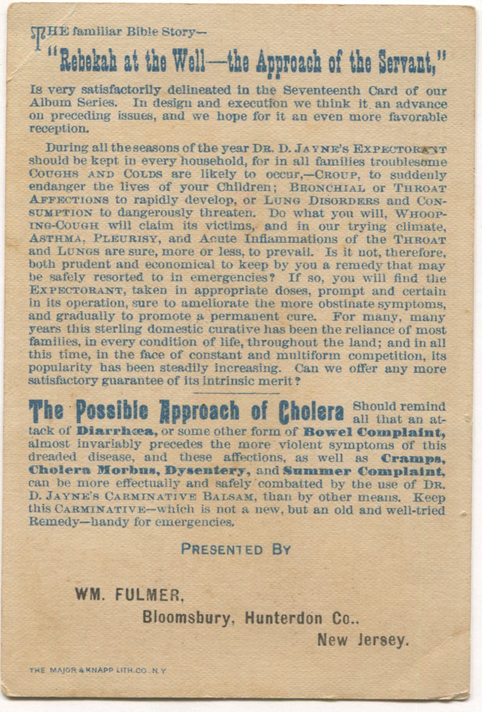 Dr. D Jayne's Expectorant and Carminative Balsam Antique Lithographed Trade Card