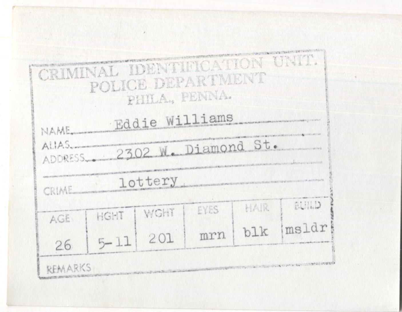 Eddie Williams Mugshot - Arrested on 10/31/1960 for Illegal Lottery