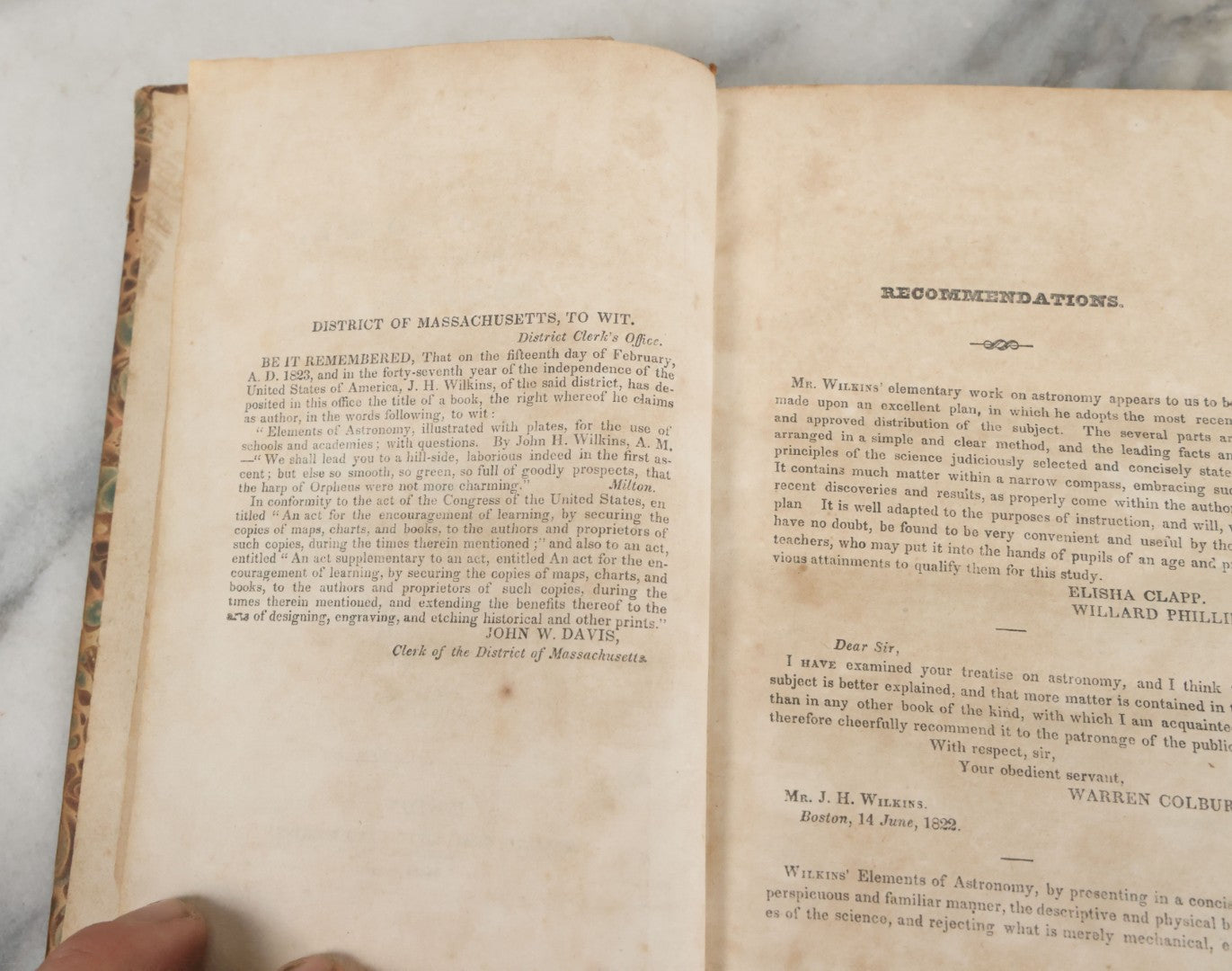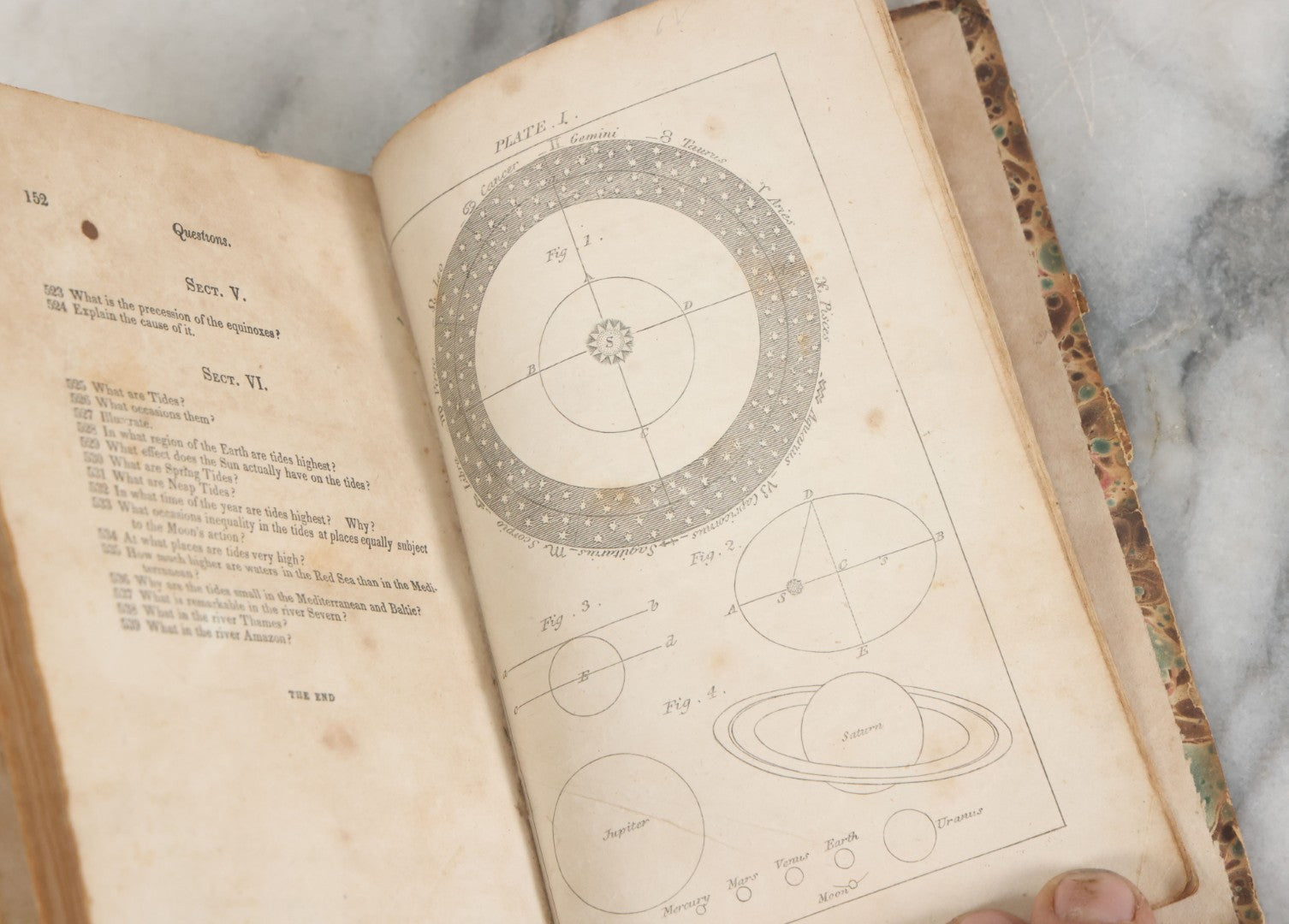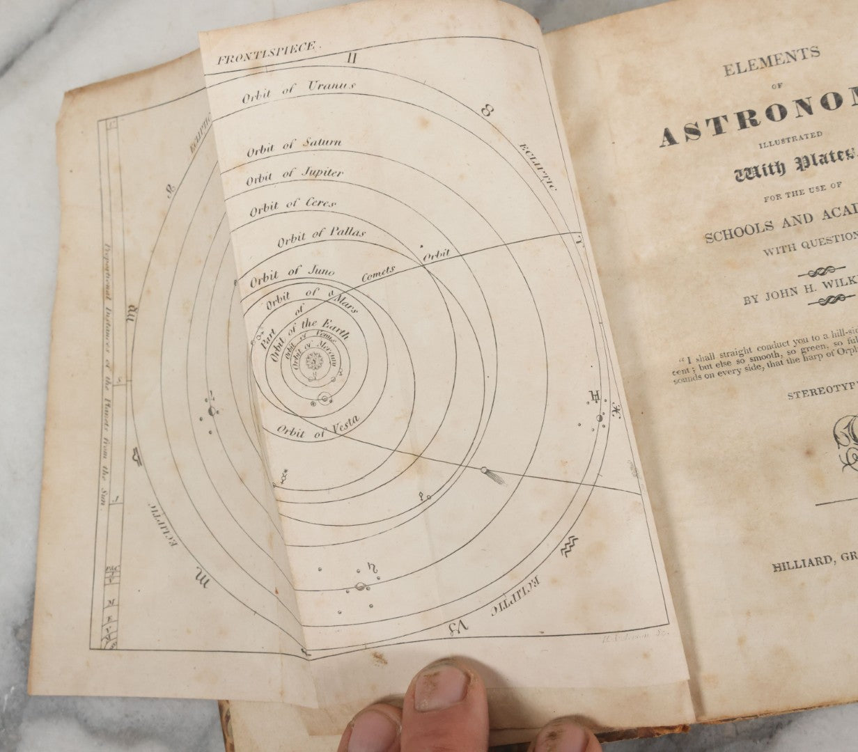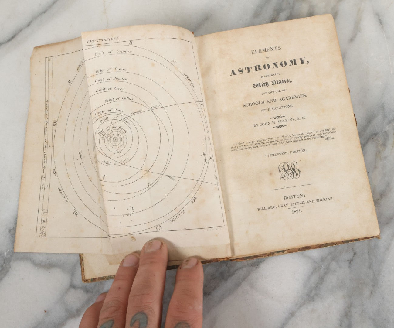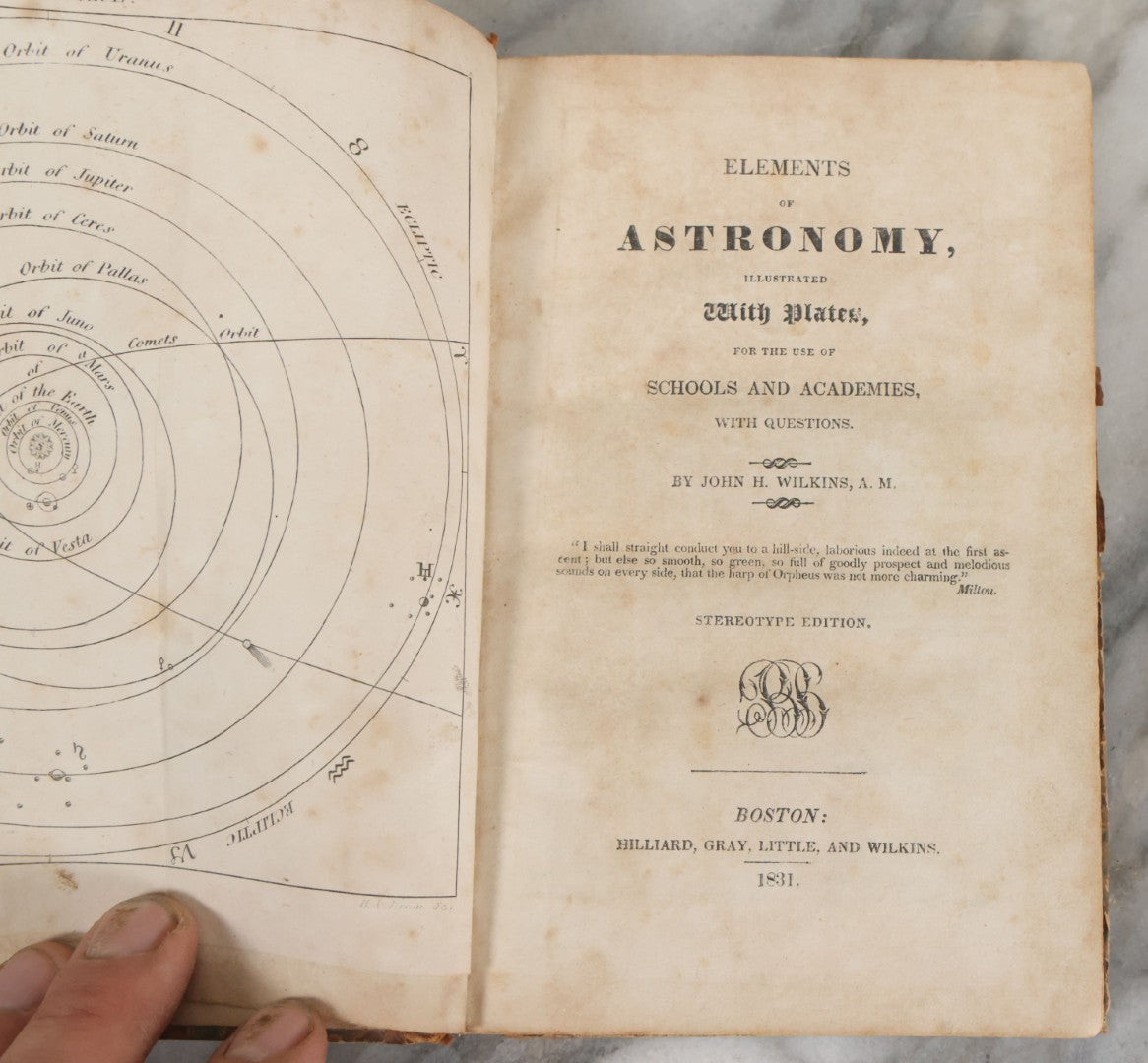 Lot 004 - "Elements Of Astronomy, Illustrated With Plates, For The Use Of Schools And Academies, With Questions" Early Antique Astronomy Book By John H. Wilkins, A.M., Stereotype Edition, Hilliard, Gray, Little, And Wilkins, Publishers, Boston 1831