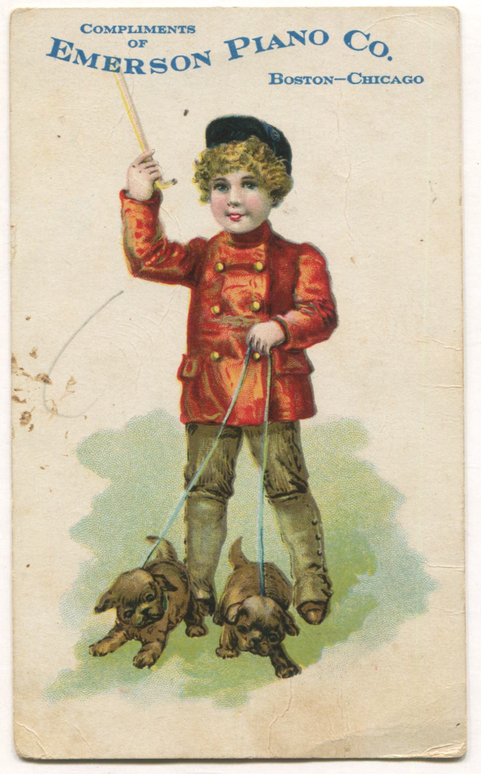 Emerson Piano Co., Boston & Chicago Antique Lithographed Trade Card