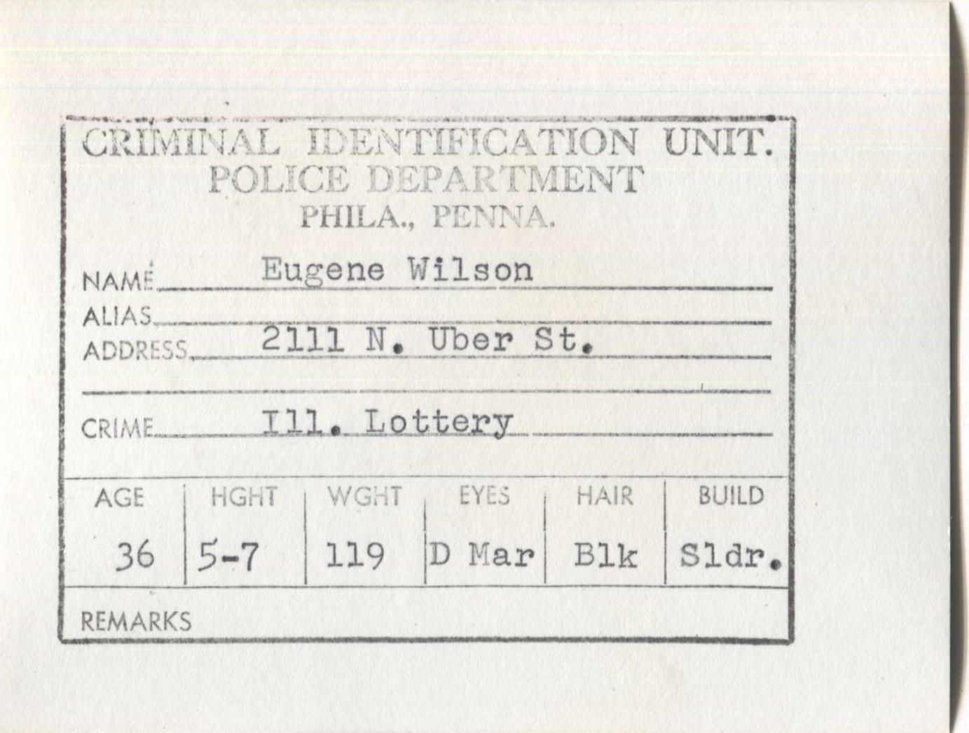 Euegene Wilson Mugshot - Arrested on 5/3/1959 for Illegal Lottery