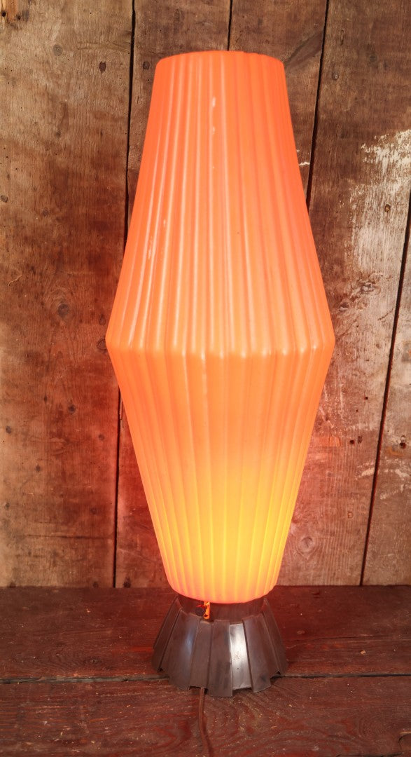 Genuine Vintage Mid-Century Modern Orange Beehive Lamp, Retro Lighting, With Base, Working Condition, Blow Mold Plastic