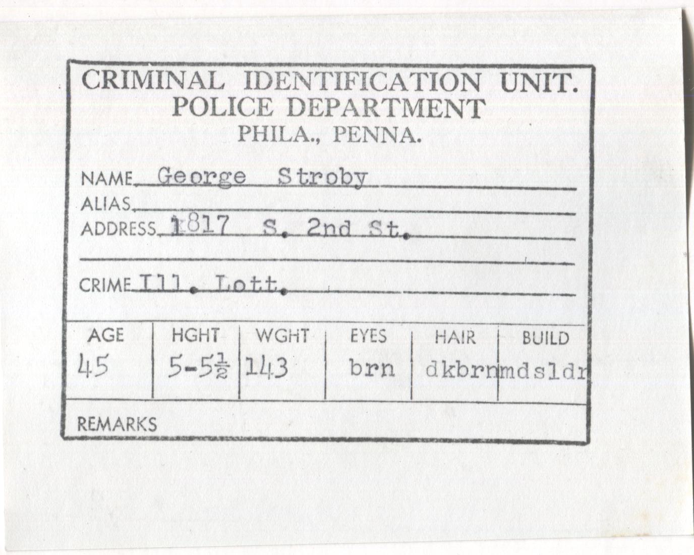 George Stroby Mugshot - Arrested on 6/2/1962 for Illegal Lottery