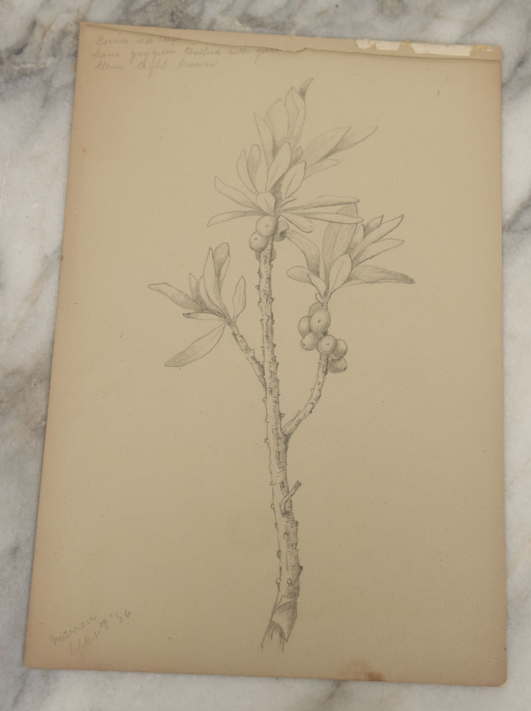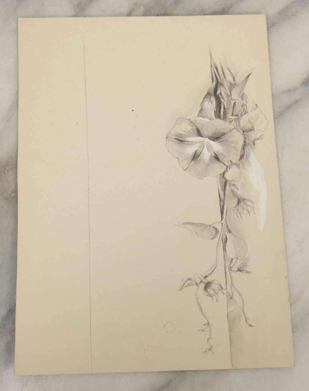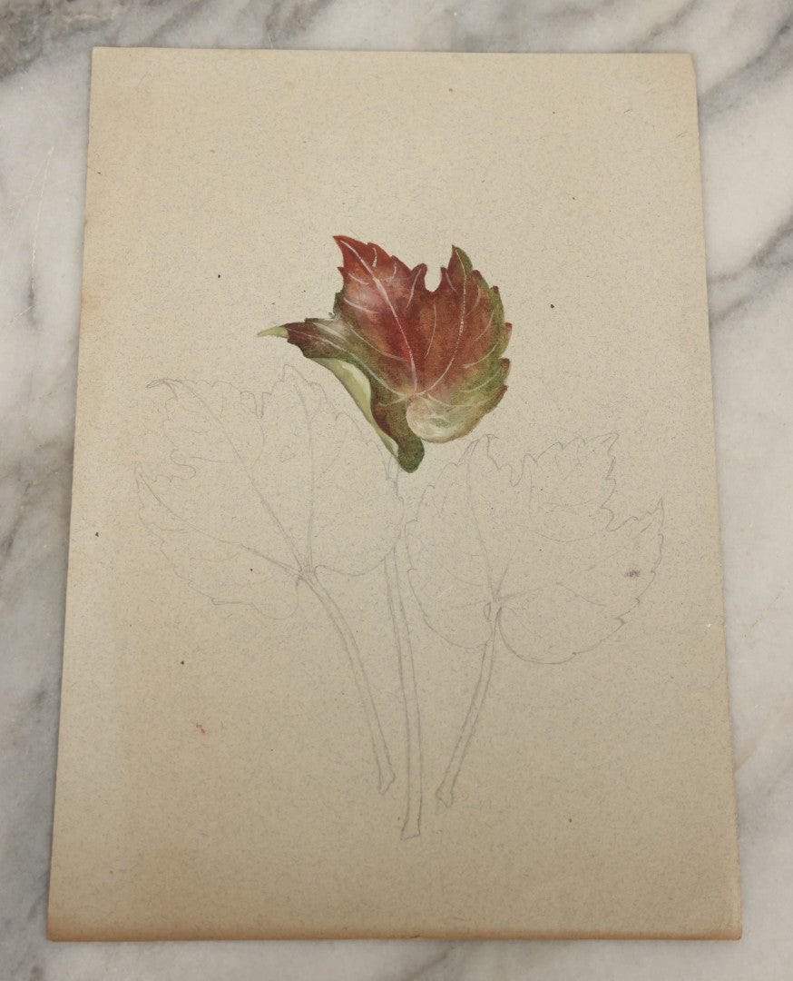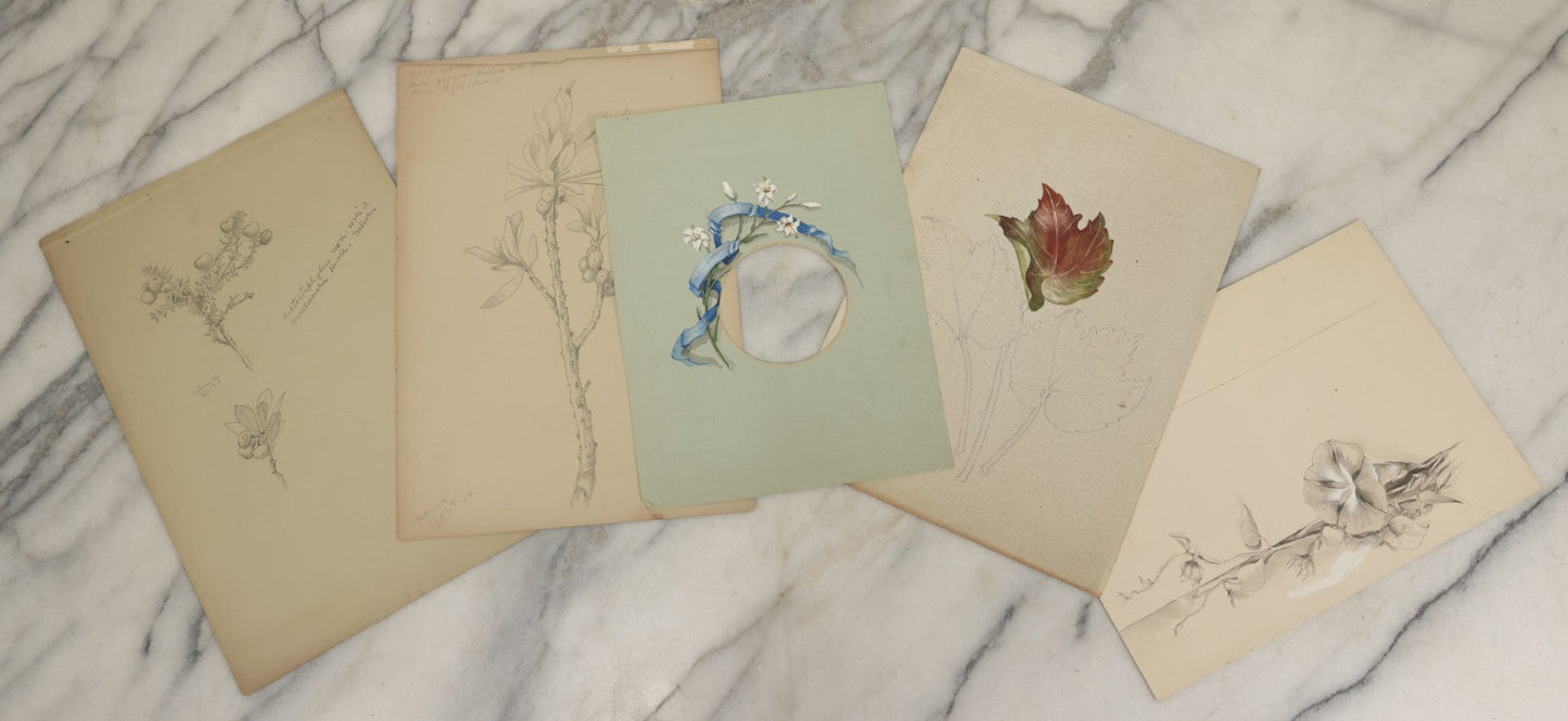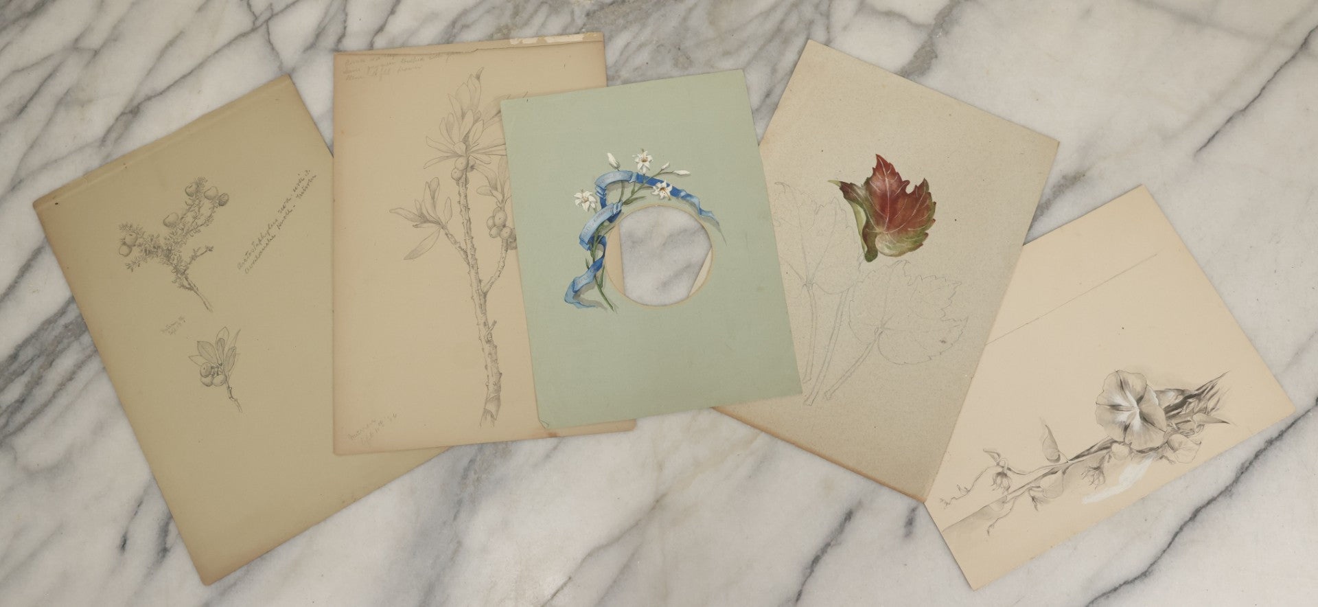 Lot 039 - Grouping Of Five Antique Botanical Watercolor Paintings And Sketches On Paper Of Flowers And More, Circa 1880, Approximately 7" x 10", Some With Identification (Grouping D)