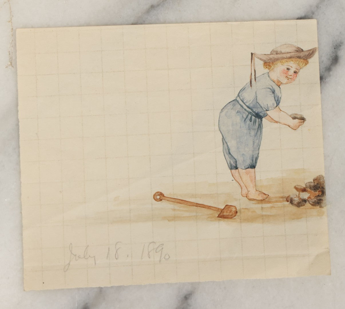 Lot 044 - Grouping Of Four Antique Paintings On Canvas And Paper Including Vase, Still Life, Little Child, Approximately 5" x 7" (Grouping I)