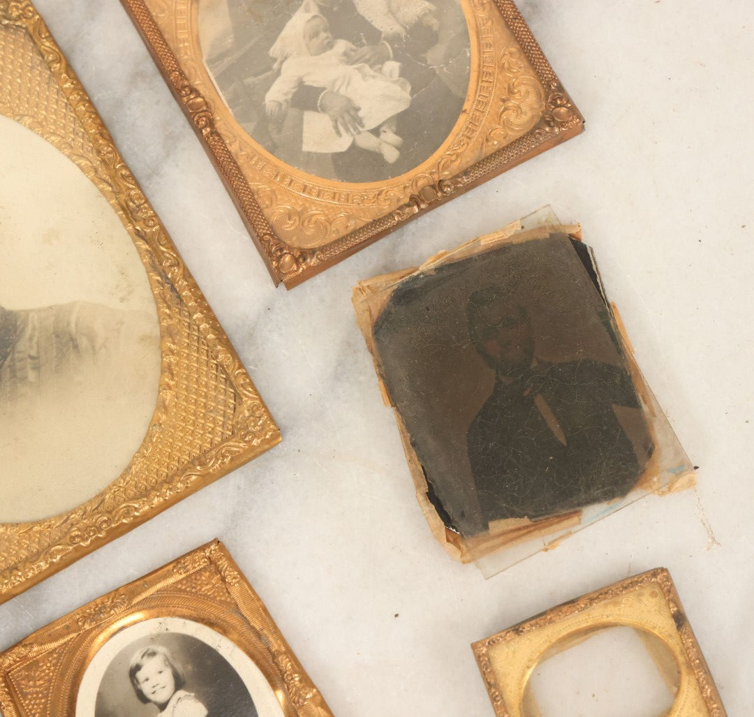 Lot 091 - Grouping Of Miscellaneous Hard Image Daguerreotype Case Parts Including Frames, Brass Mats, Glass Preservers, 8+ Pieces, As Found