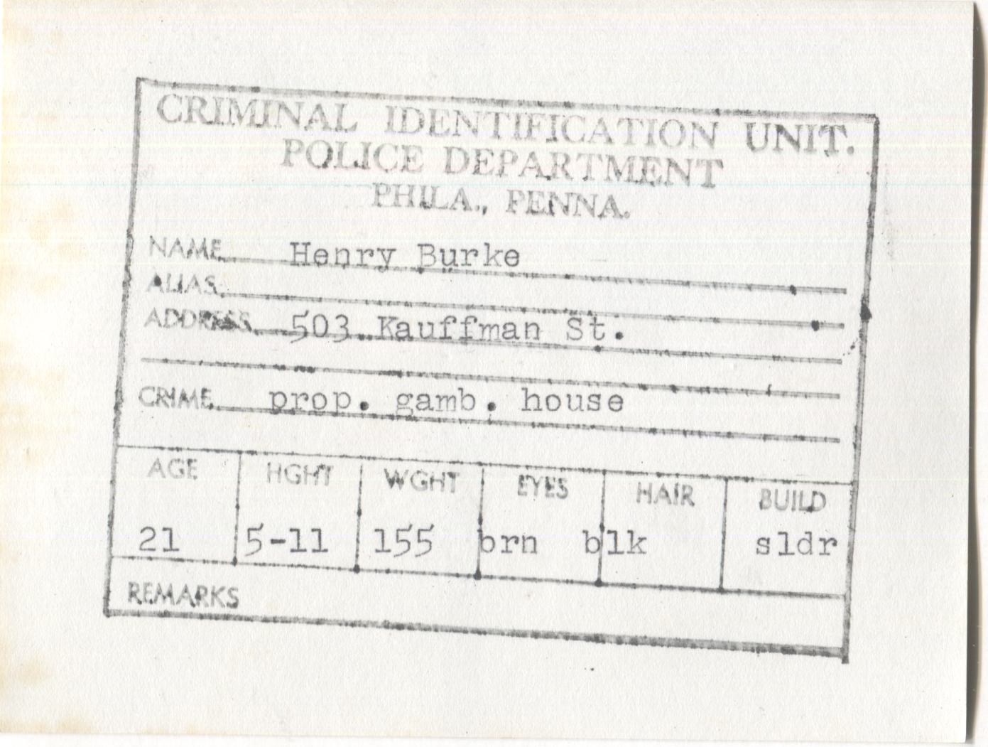 Henry Burke Mugshot - Arrested on 4/23/1961 for Being a Proprietor of a Gambling House