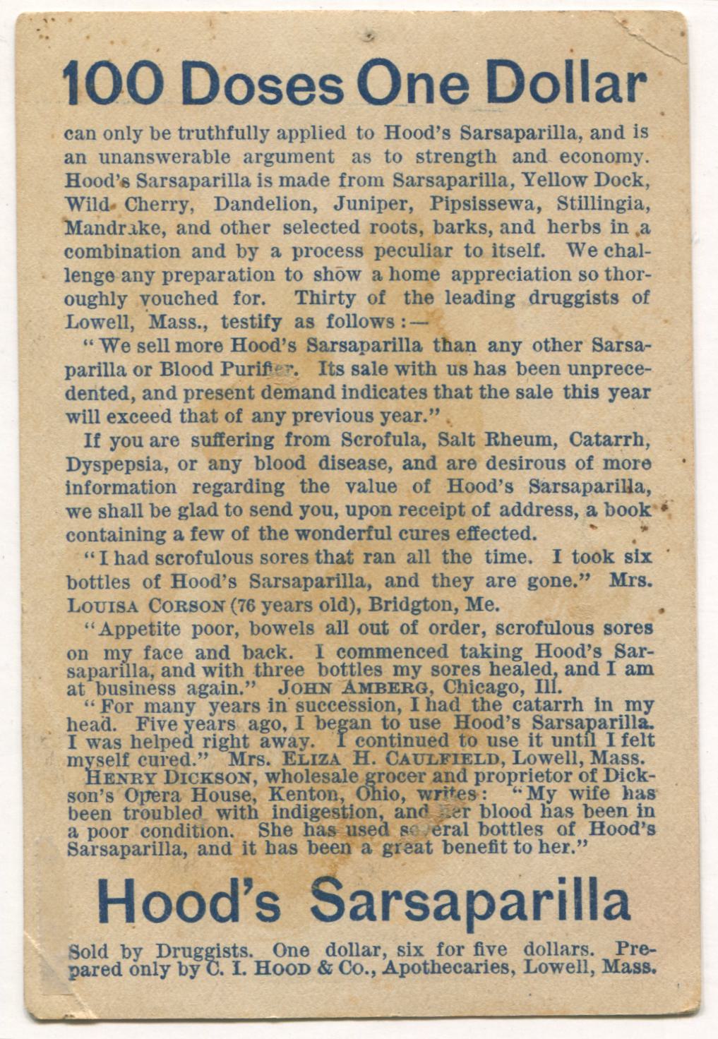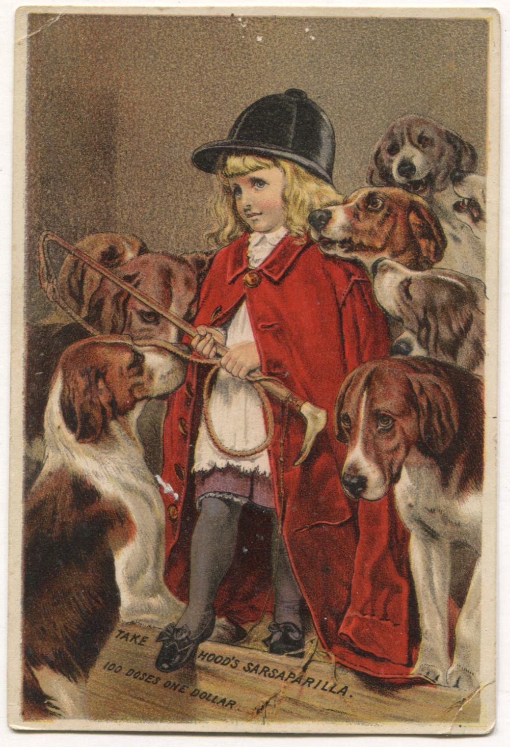 Hood's Sarsaparilla Little Girl & Hunting Dogs Antique Lithographed Trade Card