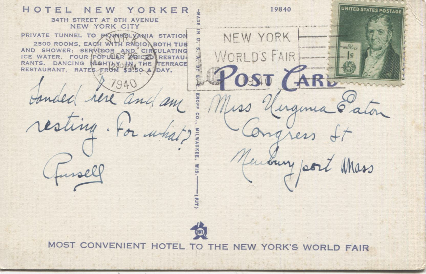 By E.-C. Kropp Co., Milwaukee, Wisconsin. "Most Convenient Hotel to the New York's World Fair"