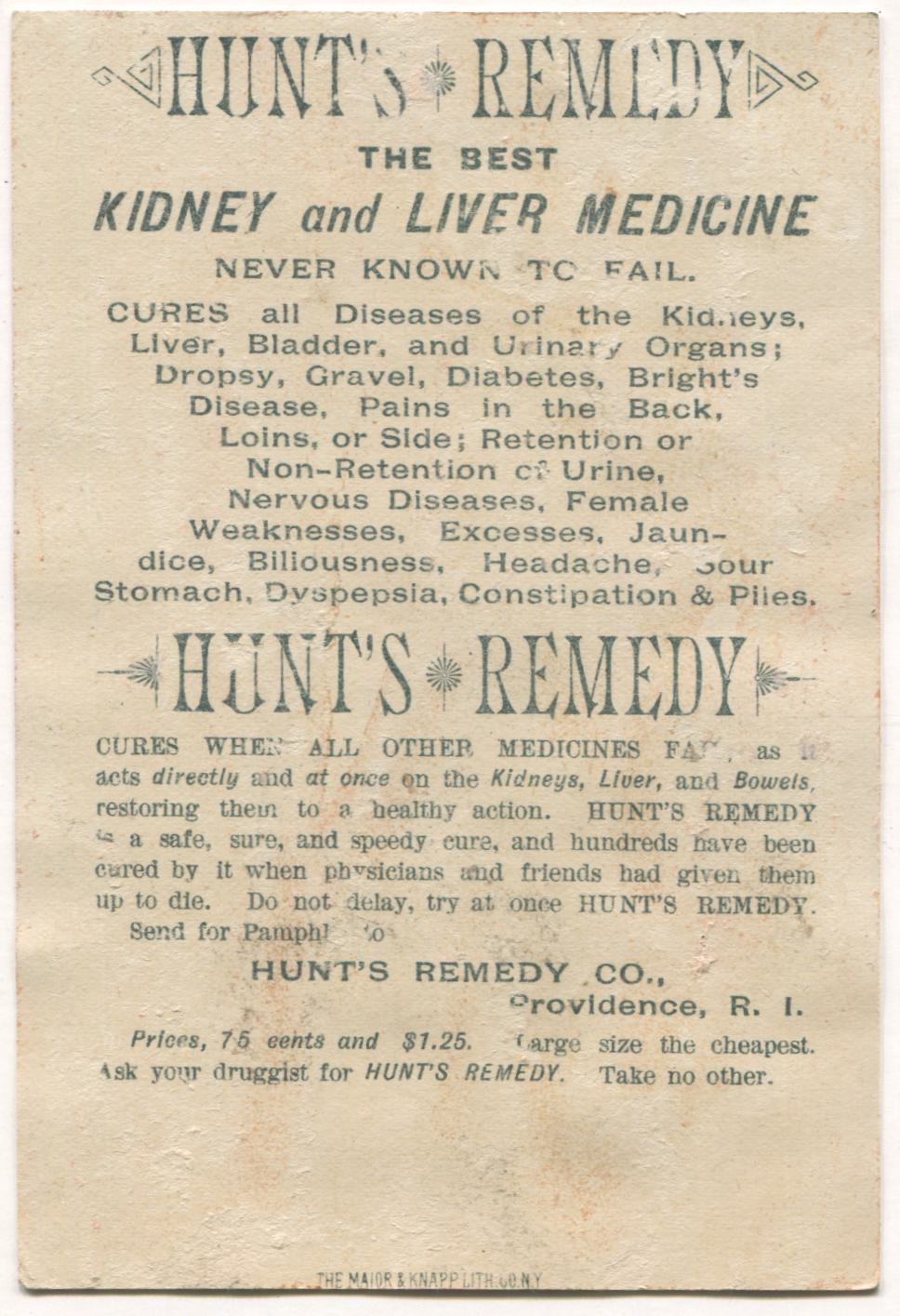 Hunt's Kidney and Liver Remedy, Providence, RI Antique Lithographed Trade Card