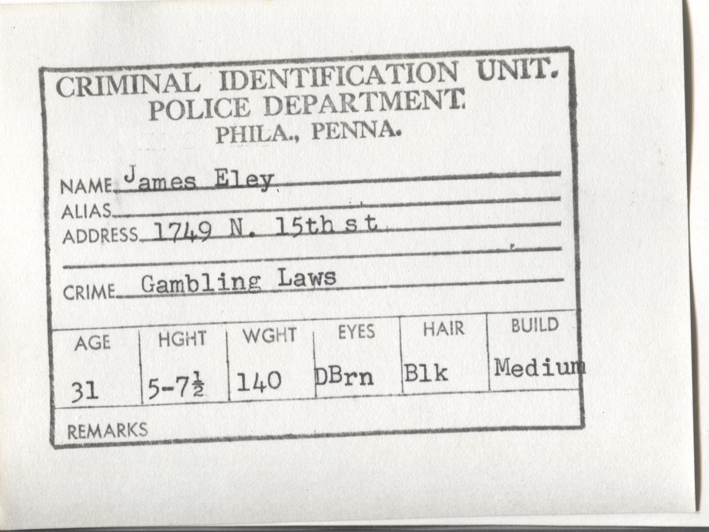 James Eley Mugshot - Arrested on 6/26/1961 for Violating Gambling Laws