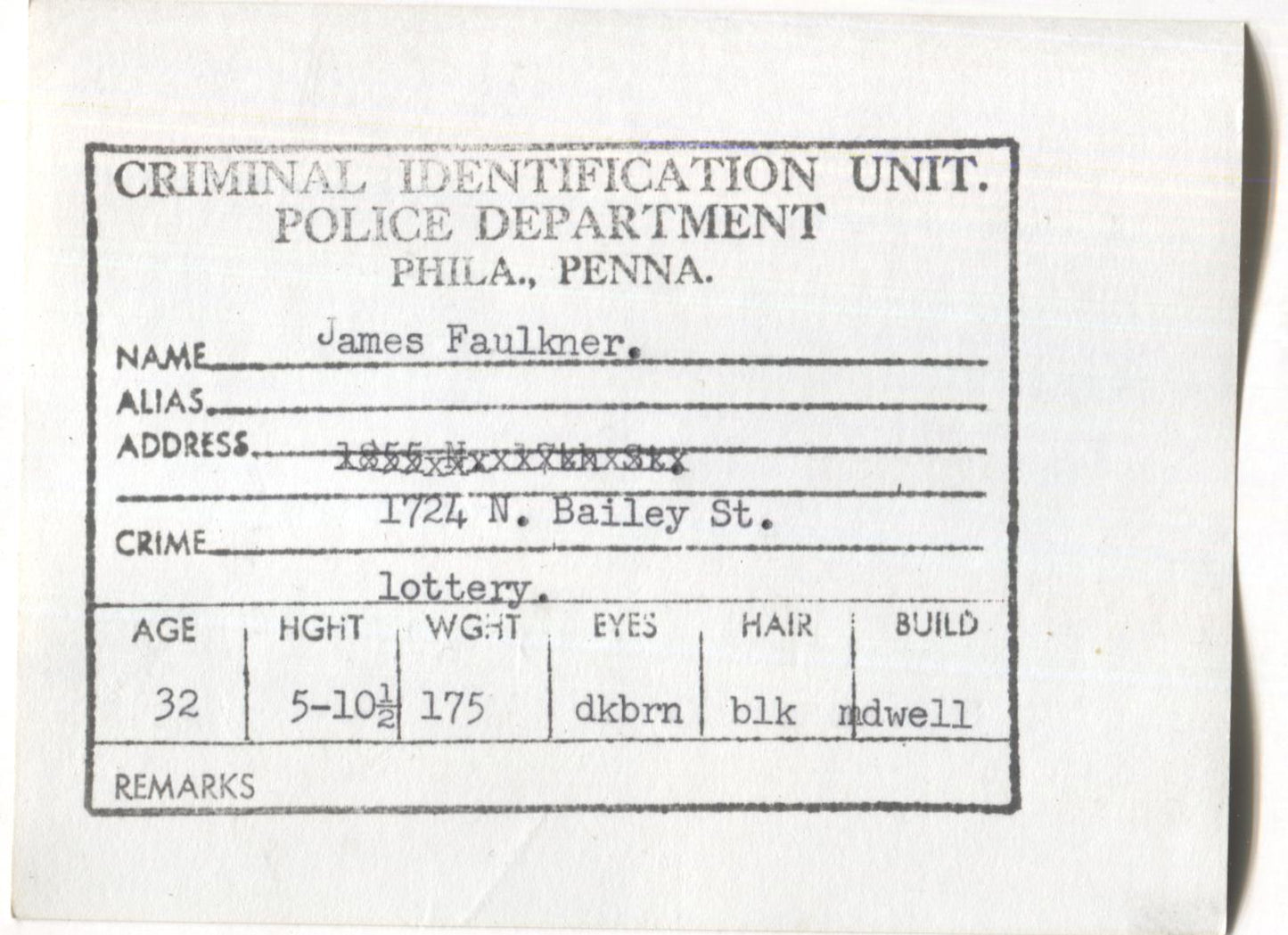 James Faulkner Mugshot - Arrested on 1/18/1961 for Illegal Lottery