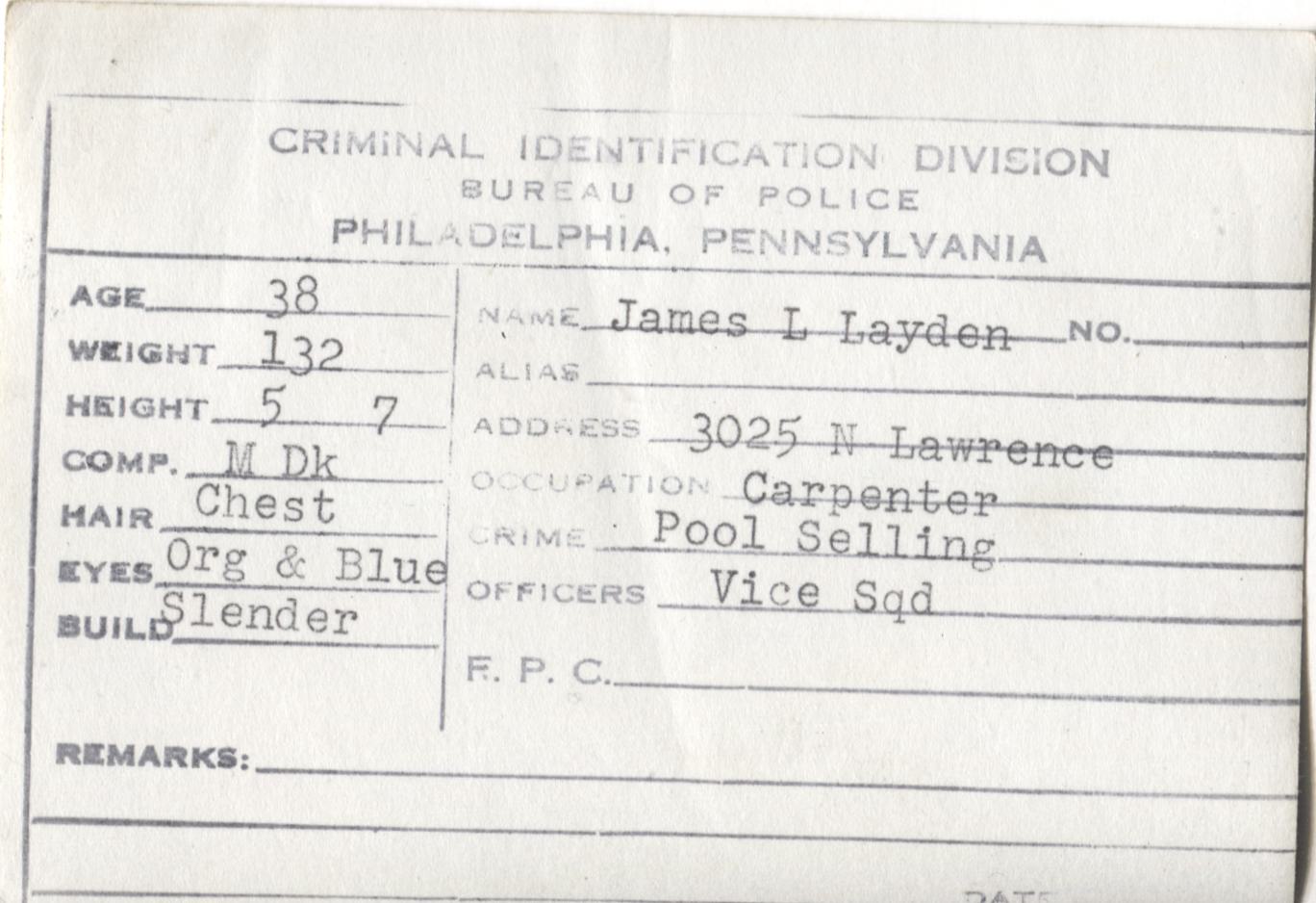 James L. Layden Mugshot - Arrested on 4/24/1948 for Poolselling