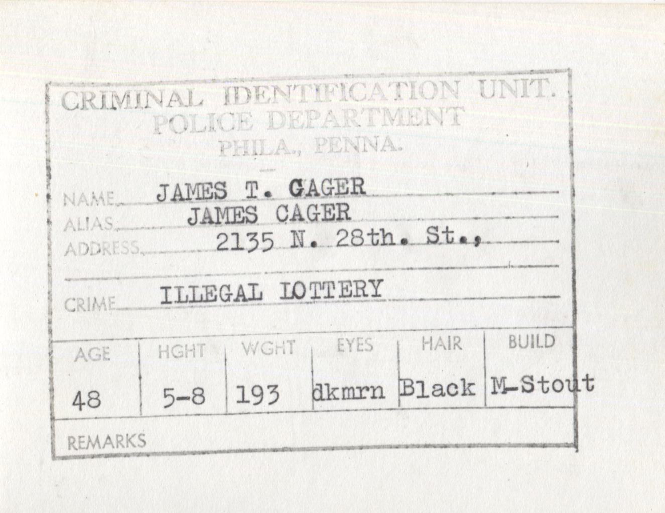 James T. Gager Mugshot - Arrested on 8/1/1962 for Illegal Lottery