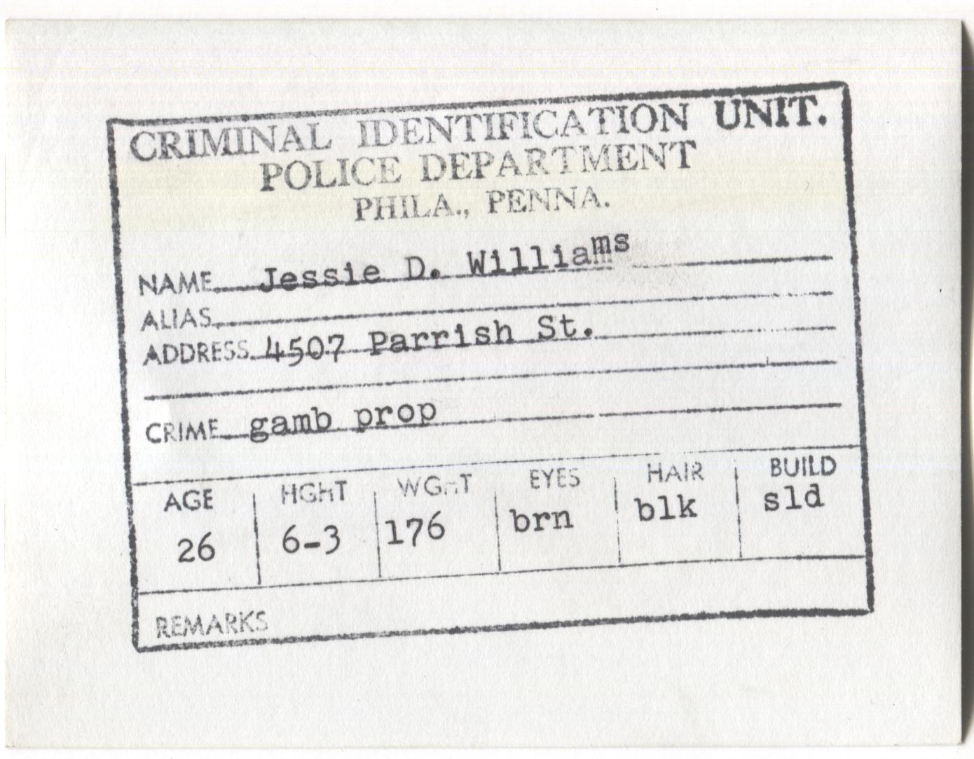 Jessie D. Williams Mugshot - Arrested on 2/14/1963 for Being a Gambling Proprieter