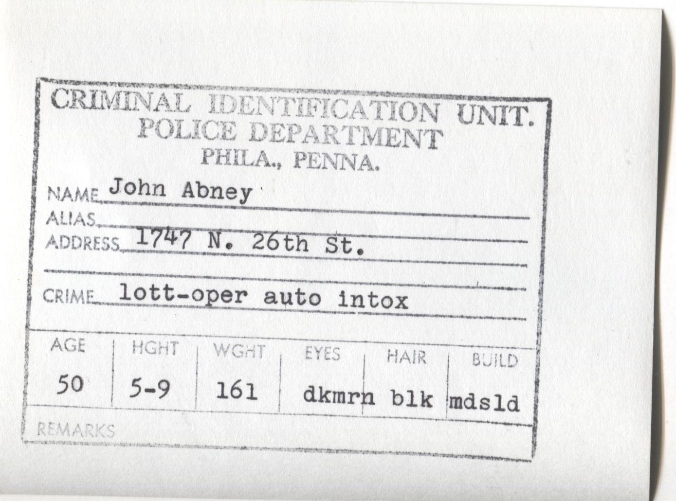 John Abney Mugshot - Arrested on 2/14/1963 for Illegal Lottery & DUI
