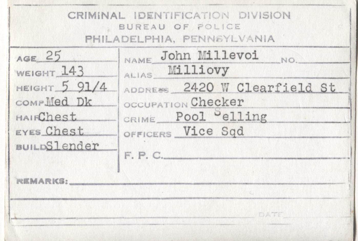 John Millevoi Mugshot - Arrested on 7/16/1948 for Poolselling