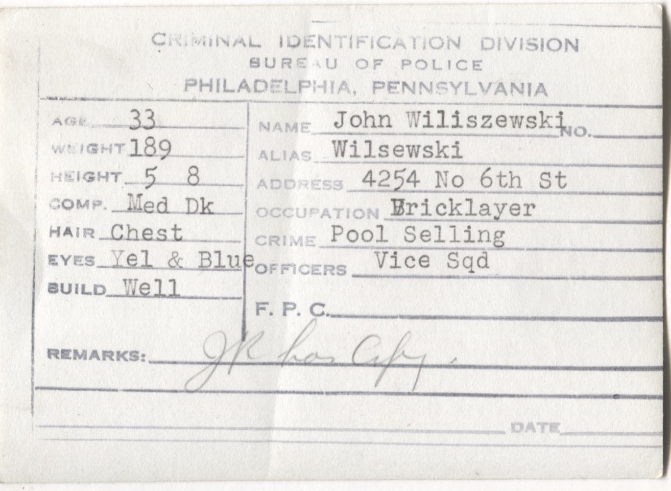 John Wiliszewski Mugshot - Arrested on 5/3/1947 for Poolselling