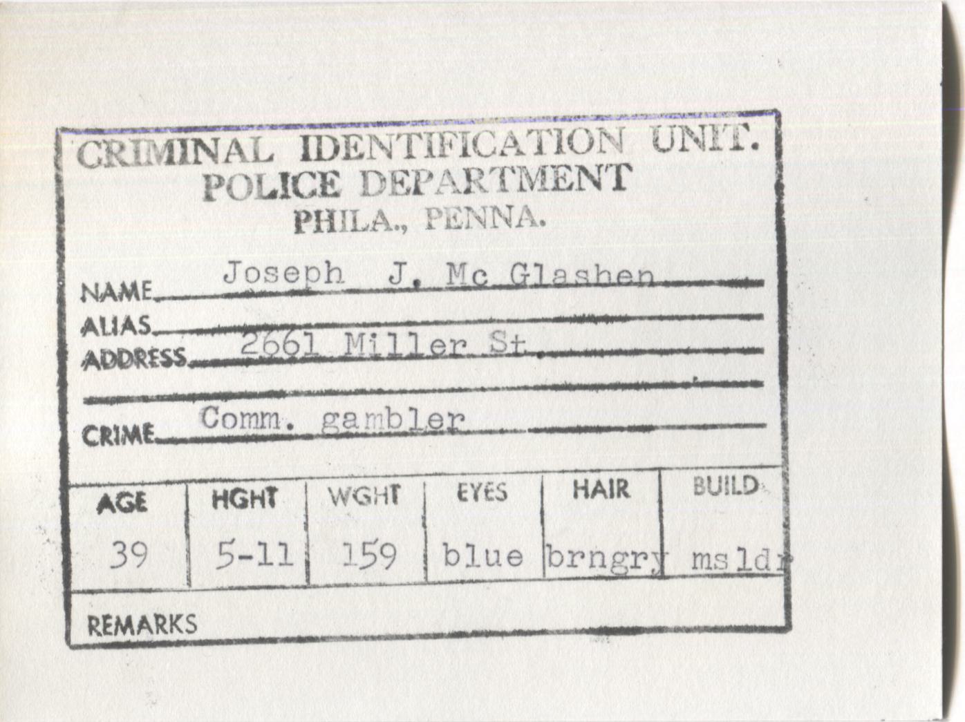Joseph J. McGlashen Mugshot - Arrested on 4/21/1964 for Being a Common Gambler