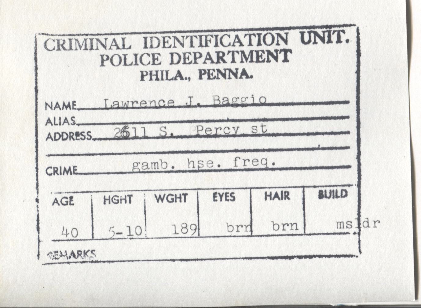 Lawrence J. Baggio Mugshot - Arrested on 9/22/1963 for Frequenting a Gambling House