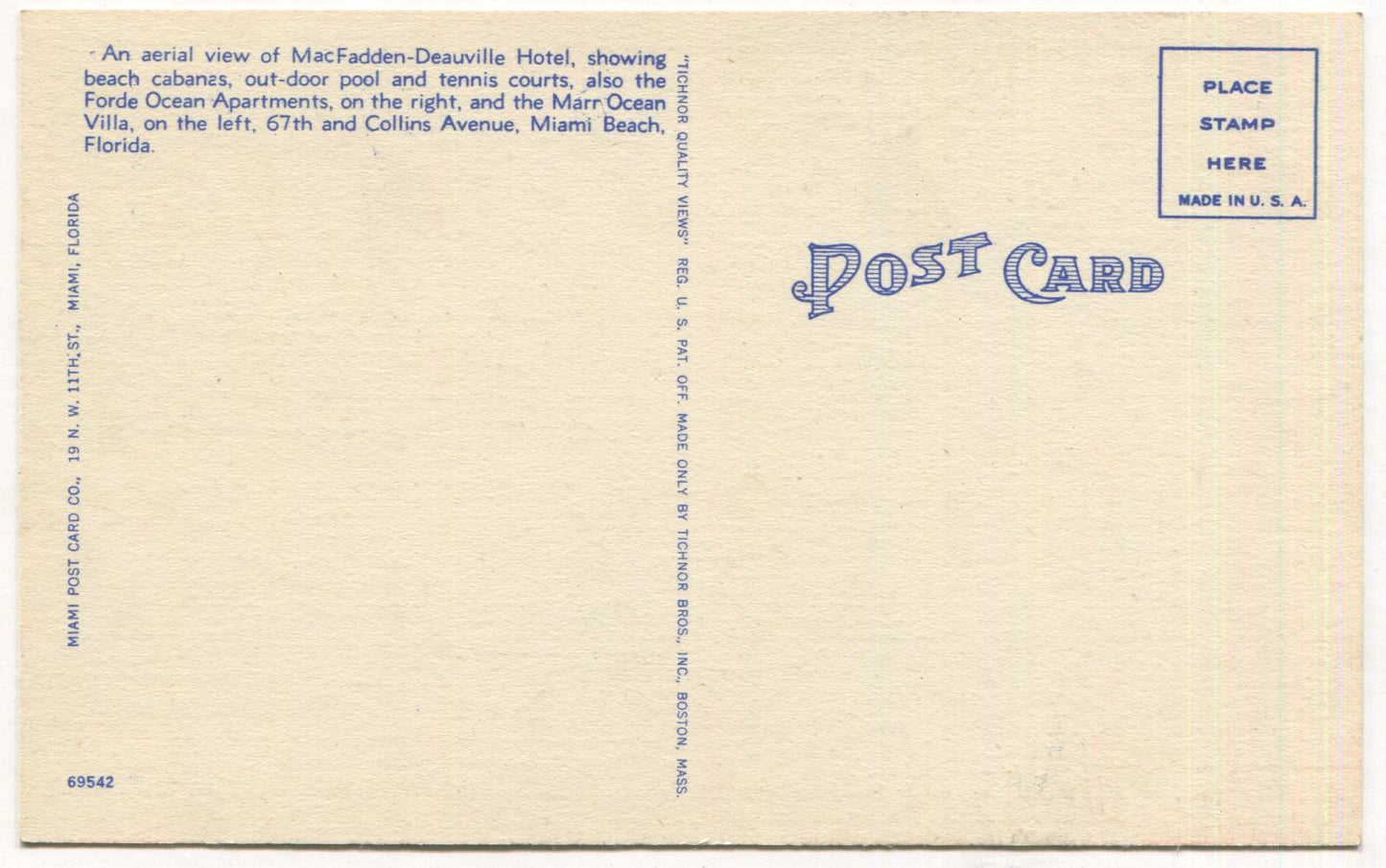 Macfadden-Deauville Hotel Miami Beach, Florida Vintage Postcard