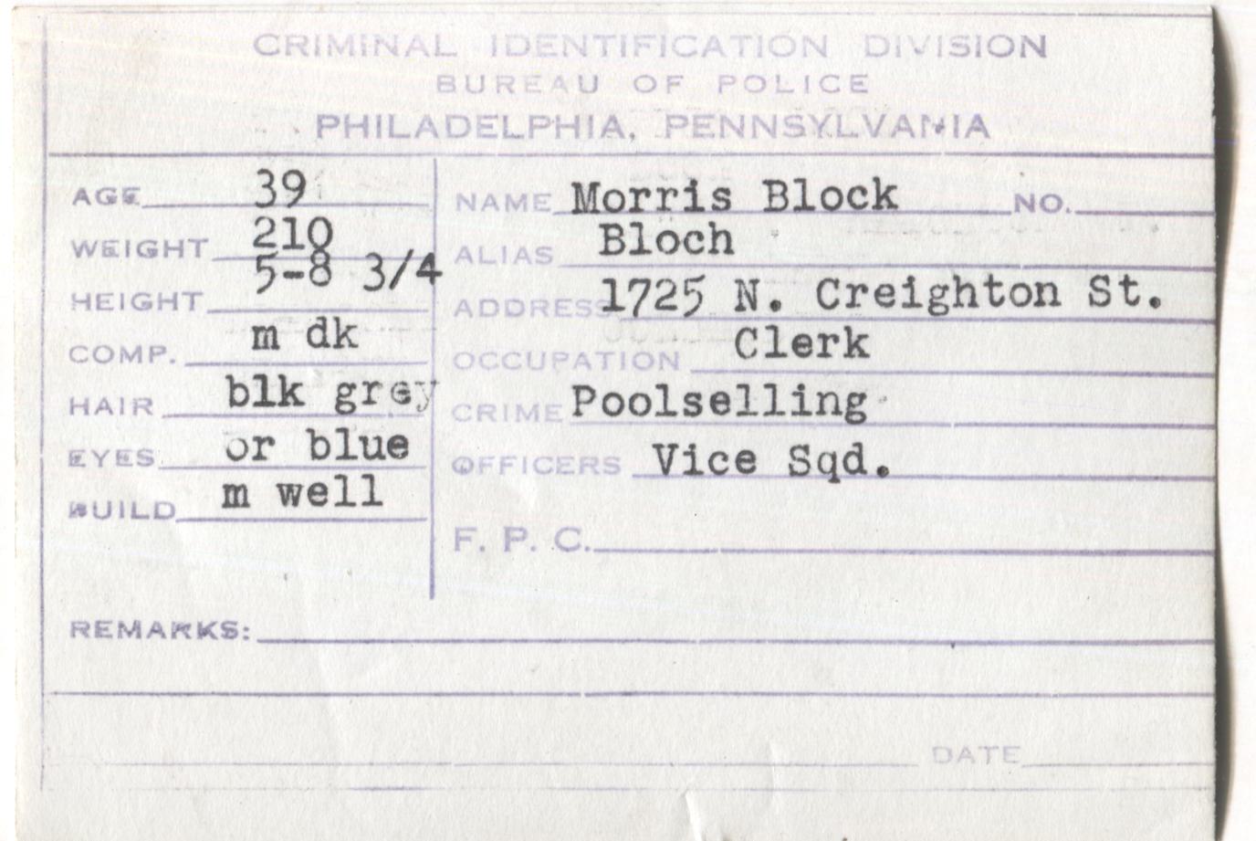 Morris Block Mugshot - Arrested on 2/8/1947 for Poolselling