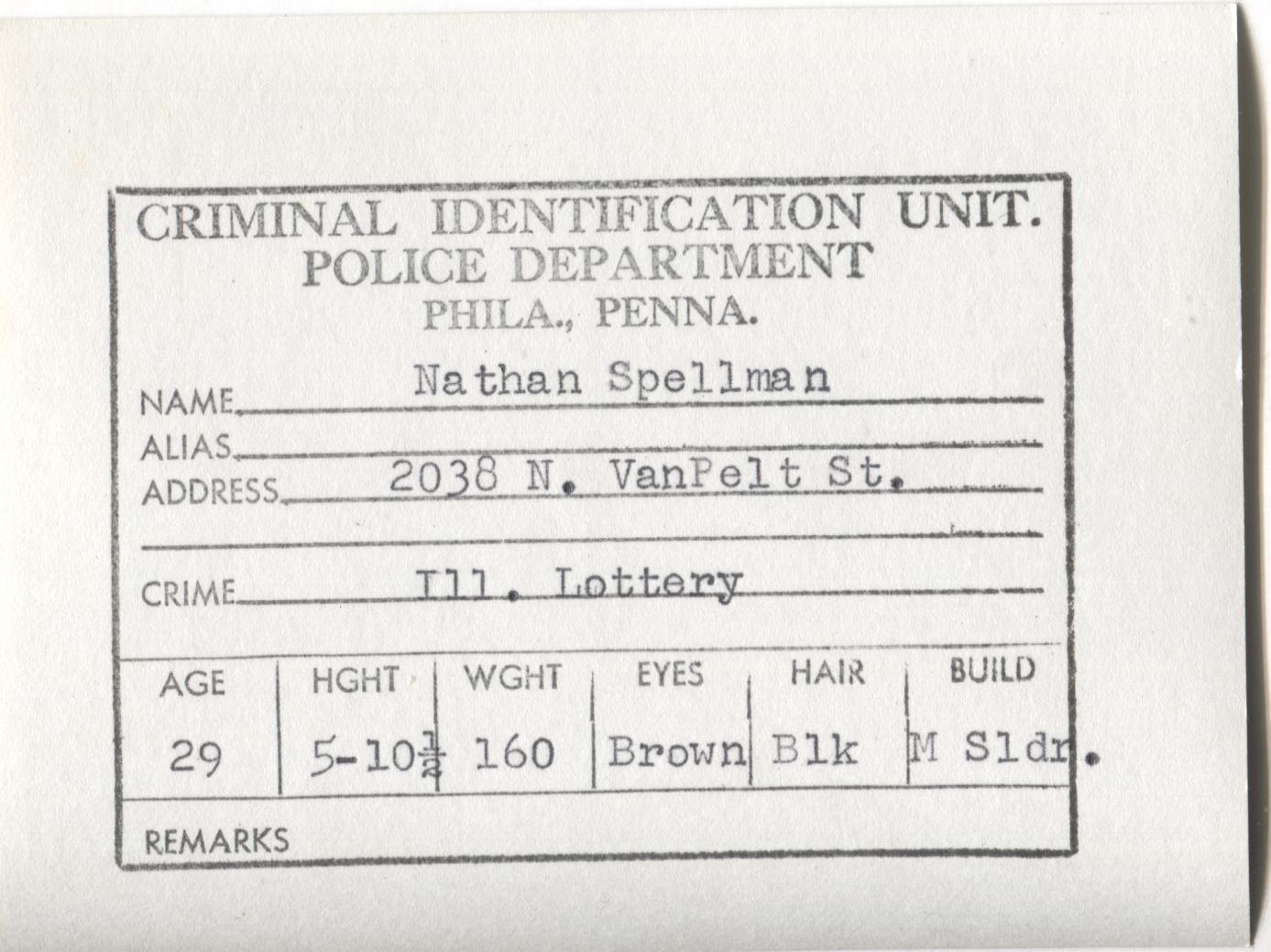 Nathan Spellman Mugshot - Arrested on 4/20/1962 for Illegal Lottery