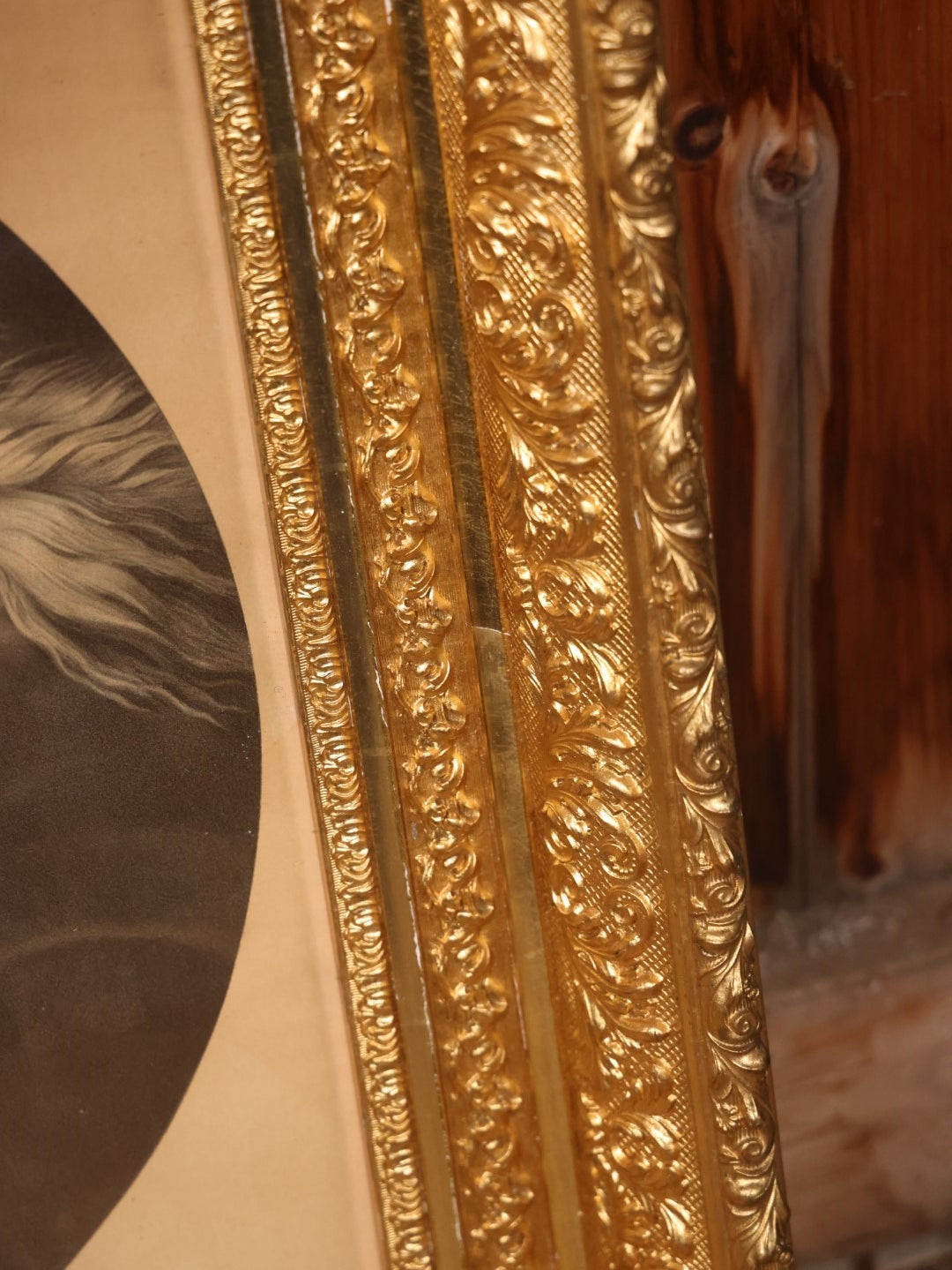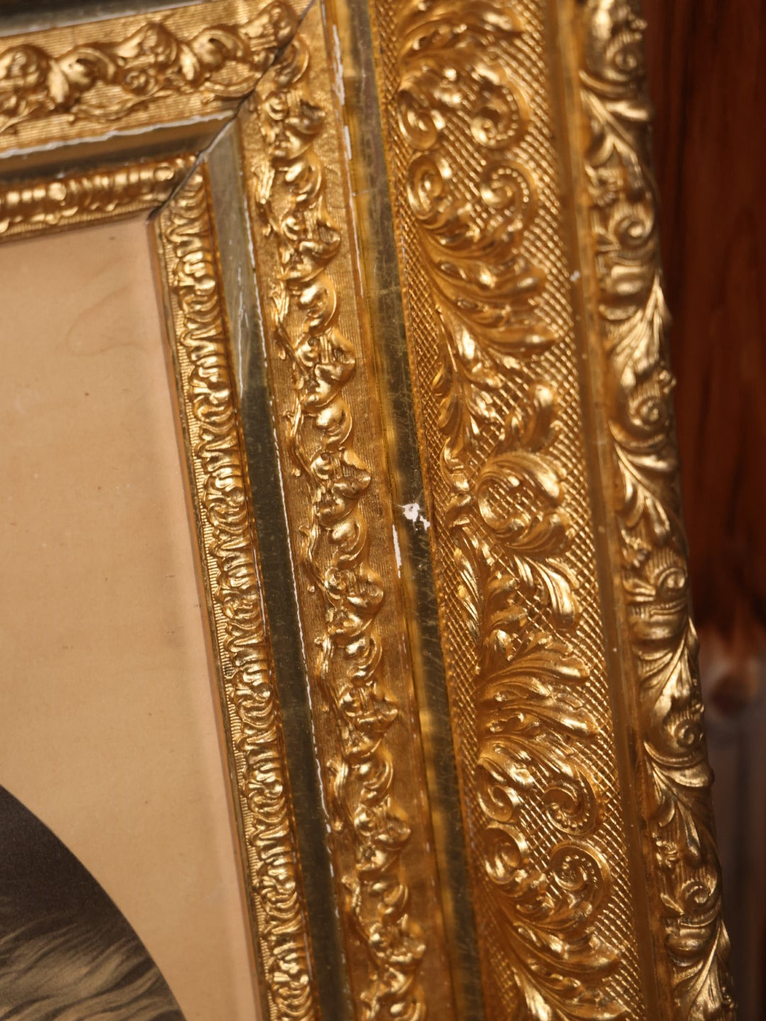 Overall very good condition in both print and frame, minor wear, markings, discoloration, spot on upper right corner