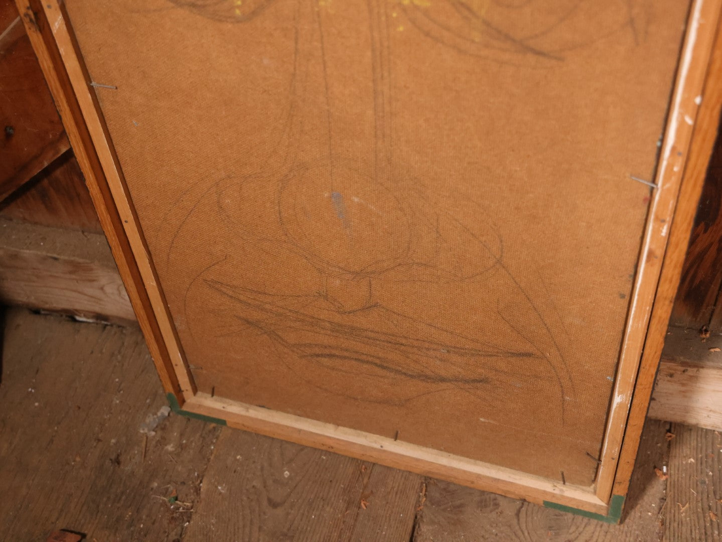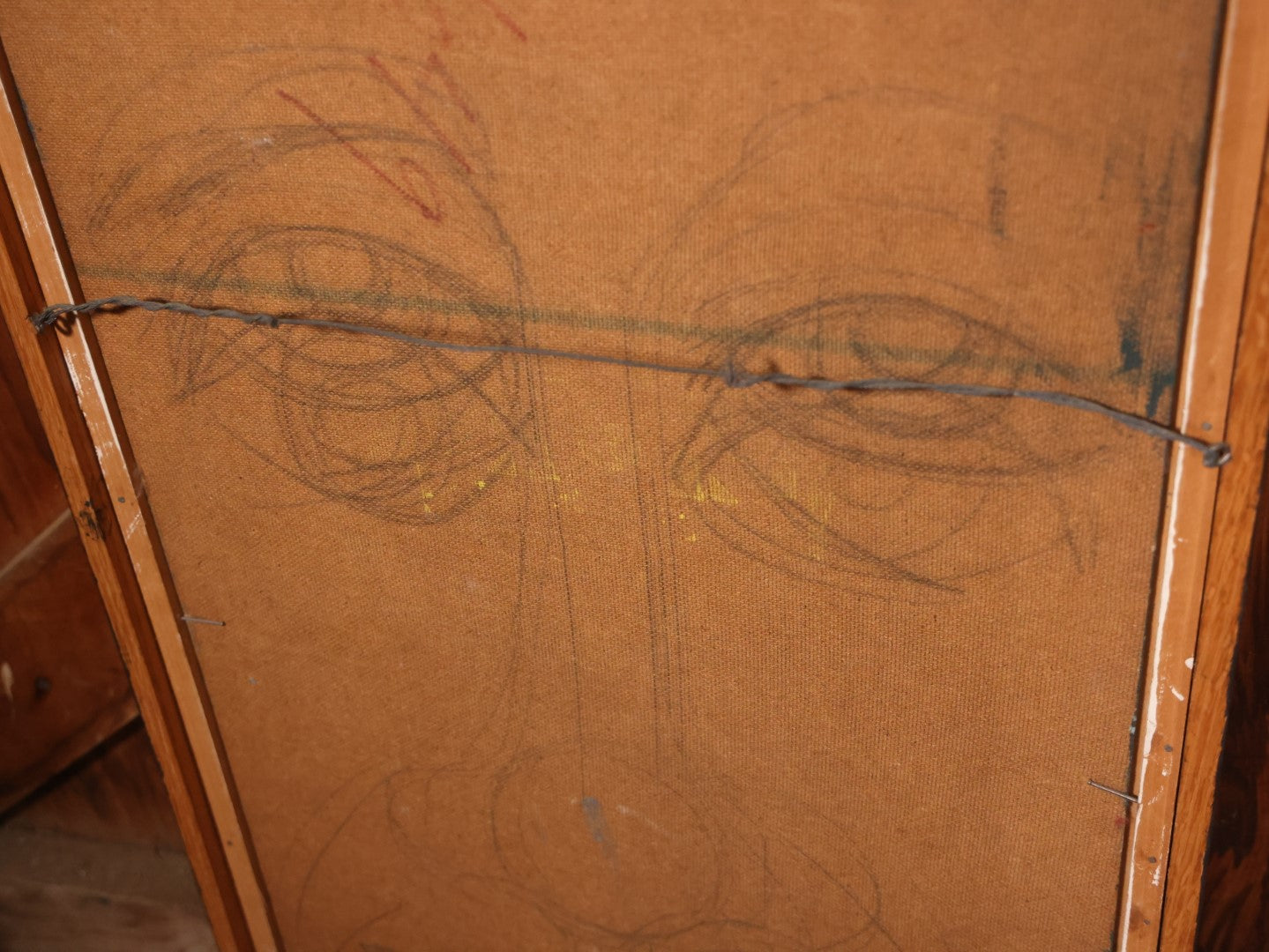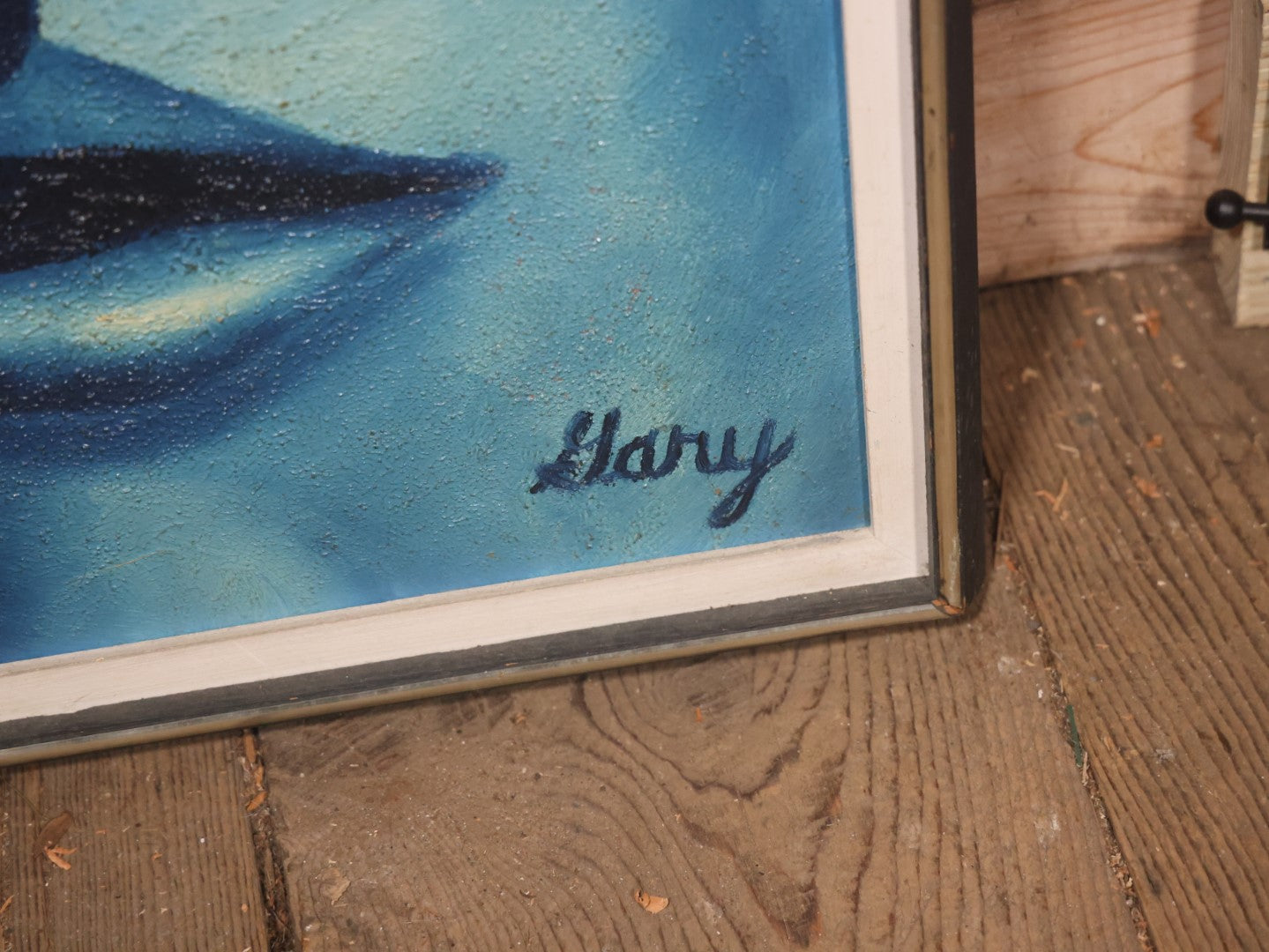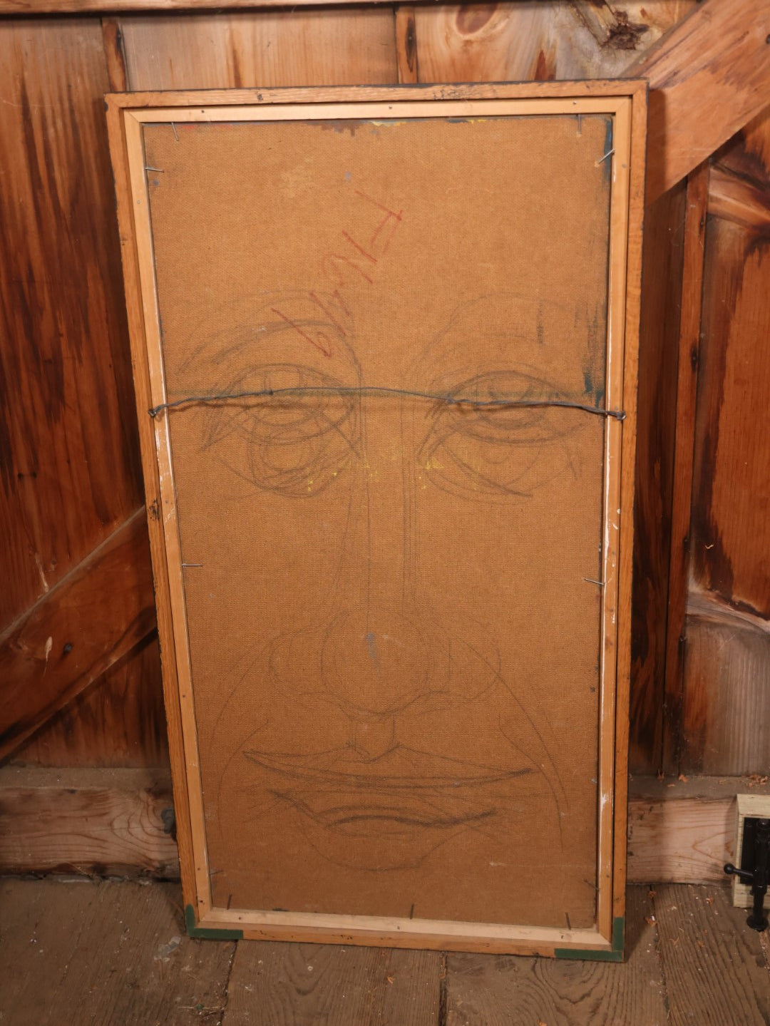 Oversized Vintage Oil On Board Painting Of A Blue Face, Signed Gary, In Frame