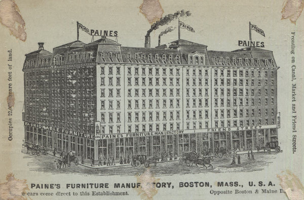 Paine's Furniture Manufactory Antique Trade Card, Boston, MA - 5.5 x 3.5"