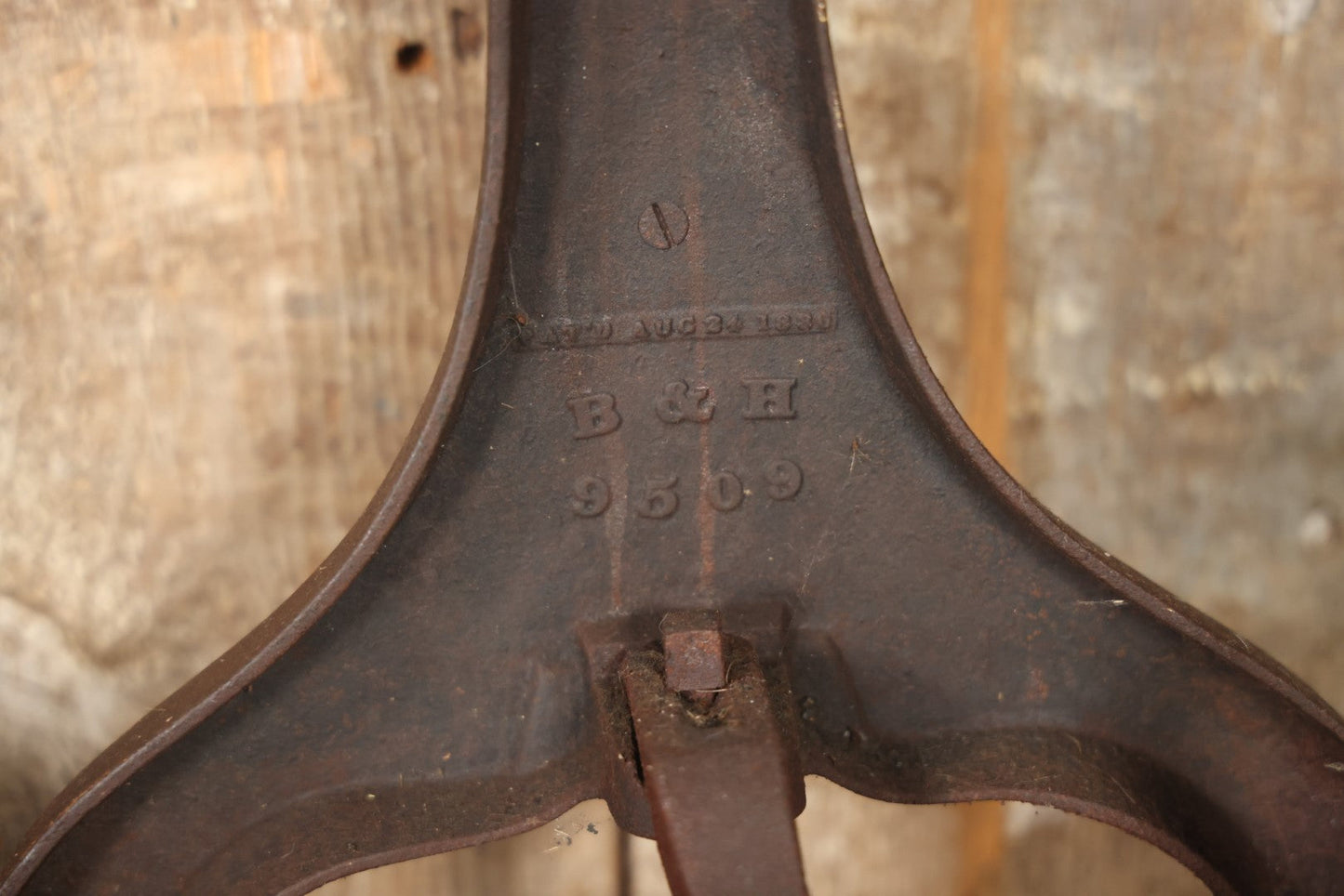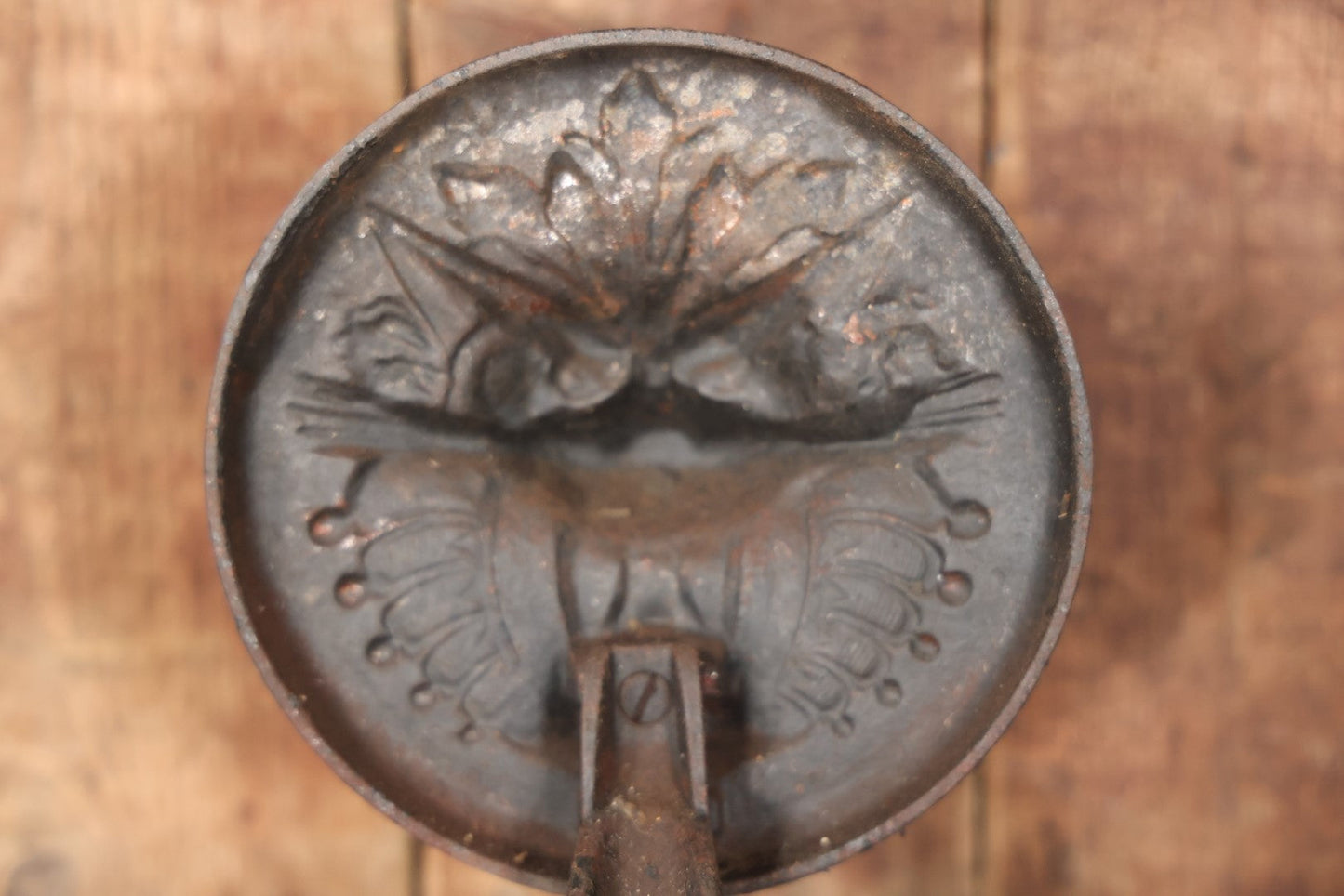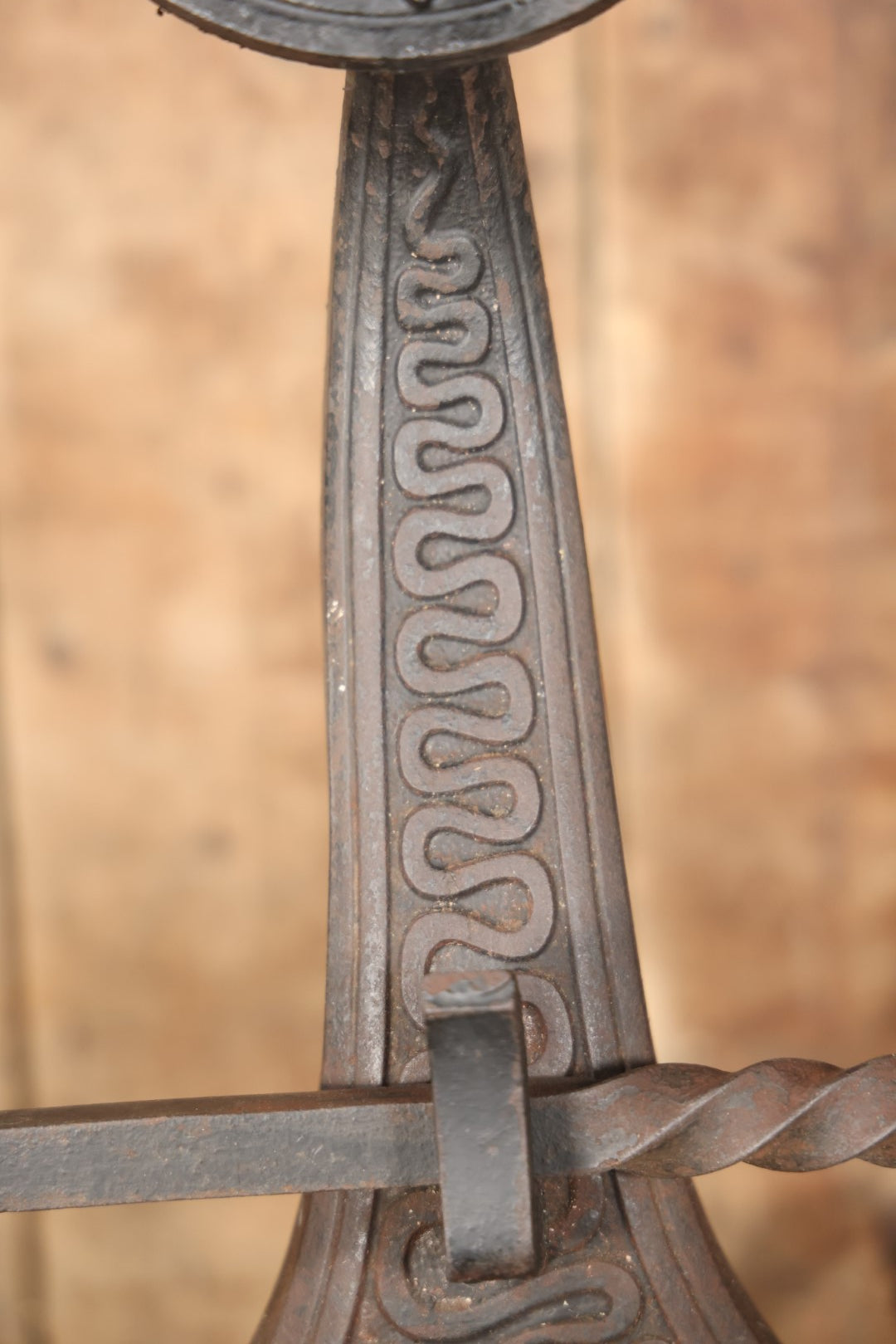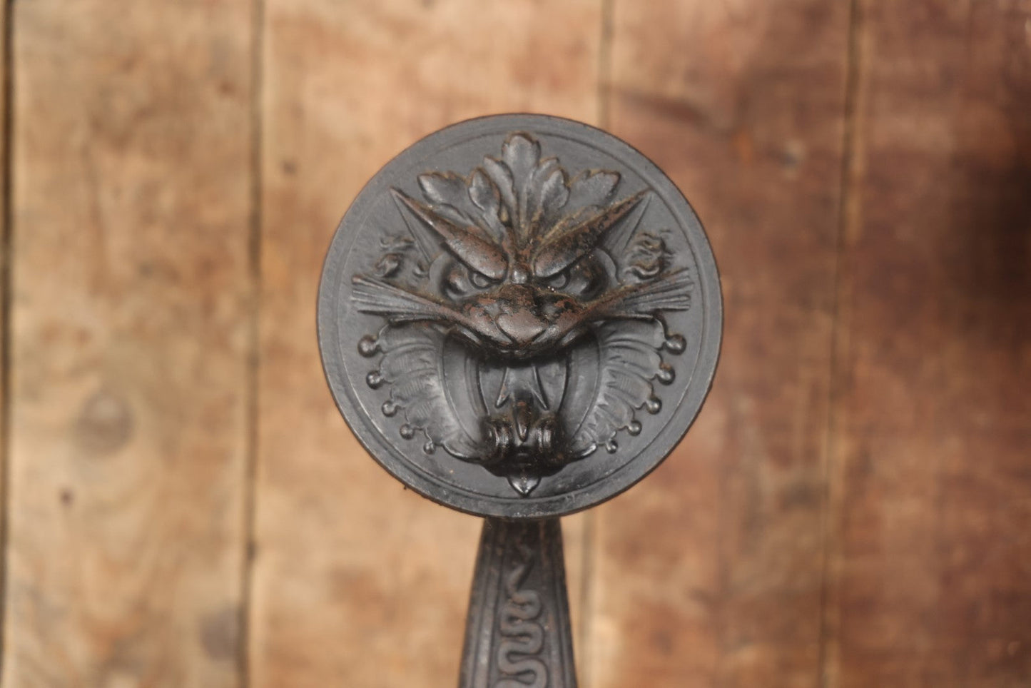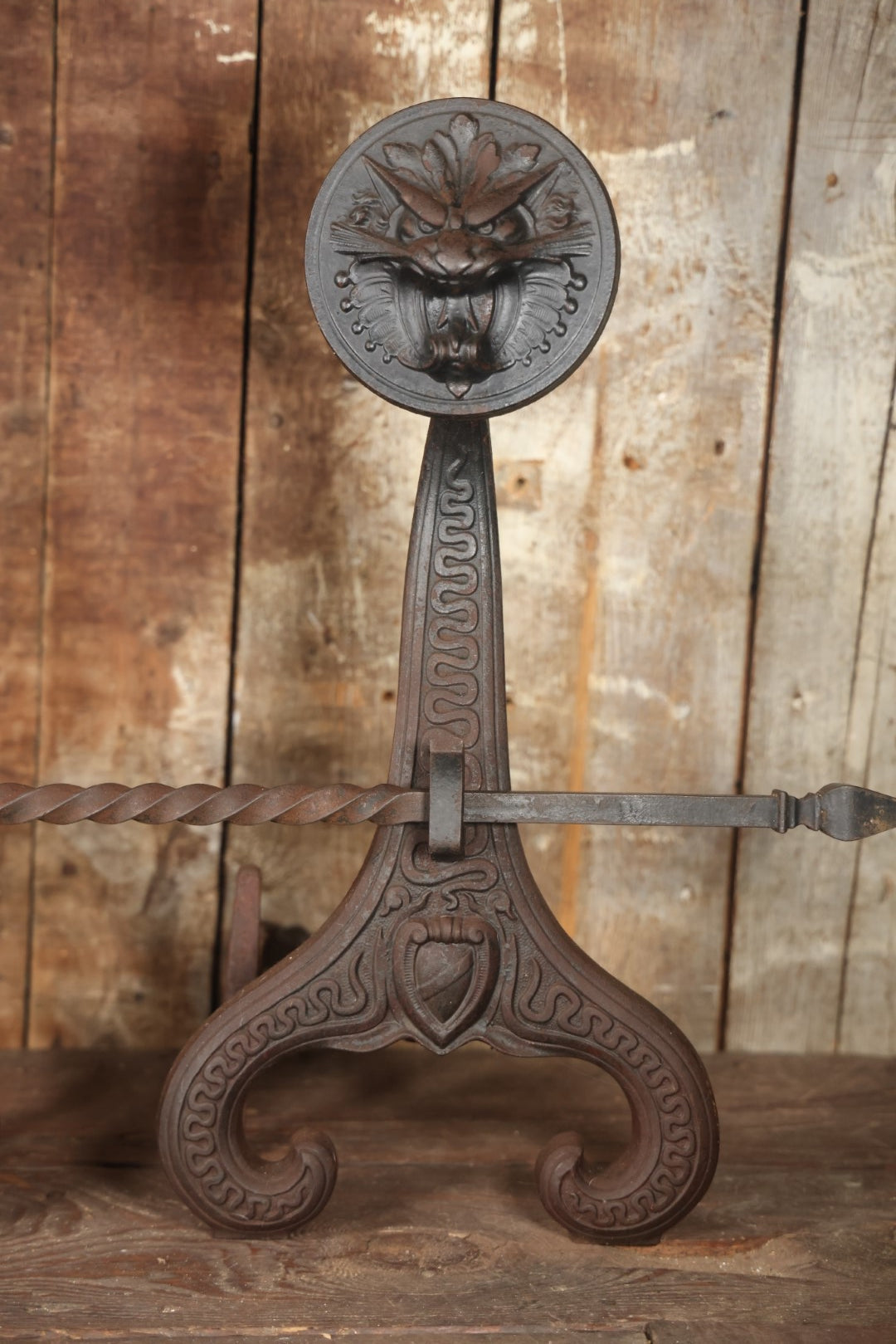 Pair Antique Cast Iron Bradley And Hubbard Dragon Face Andirons #9509 With Crossbar, Patented 1896