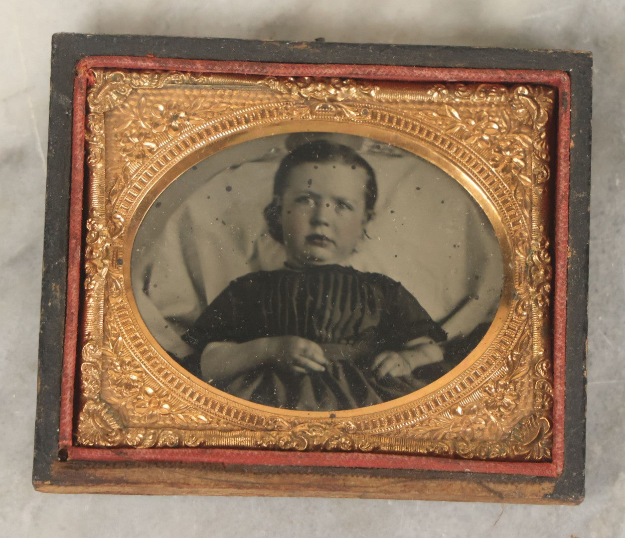 Your absentee bid for Lot 071 - Pair Of Antique 1/9th Plate Cased Images Including Hidden Mother Ruby Ambrotype With Young Child And Very Dark Tintype Of A Woman, In Half Leatherette Union Cases was successfully submitted—thank you for bidding with us!