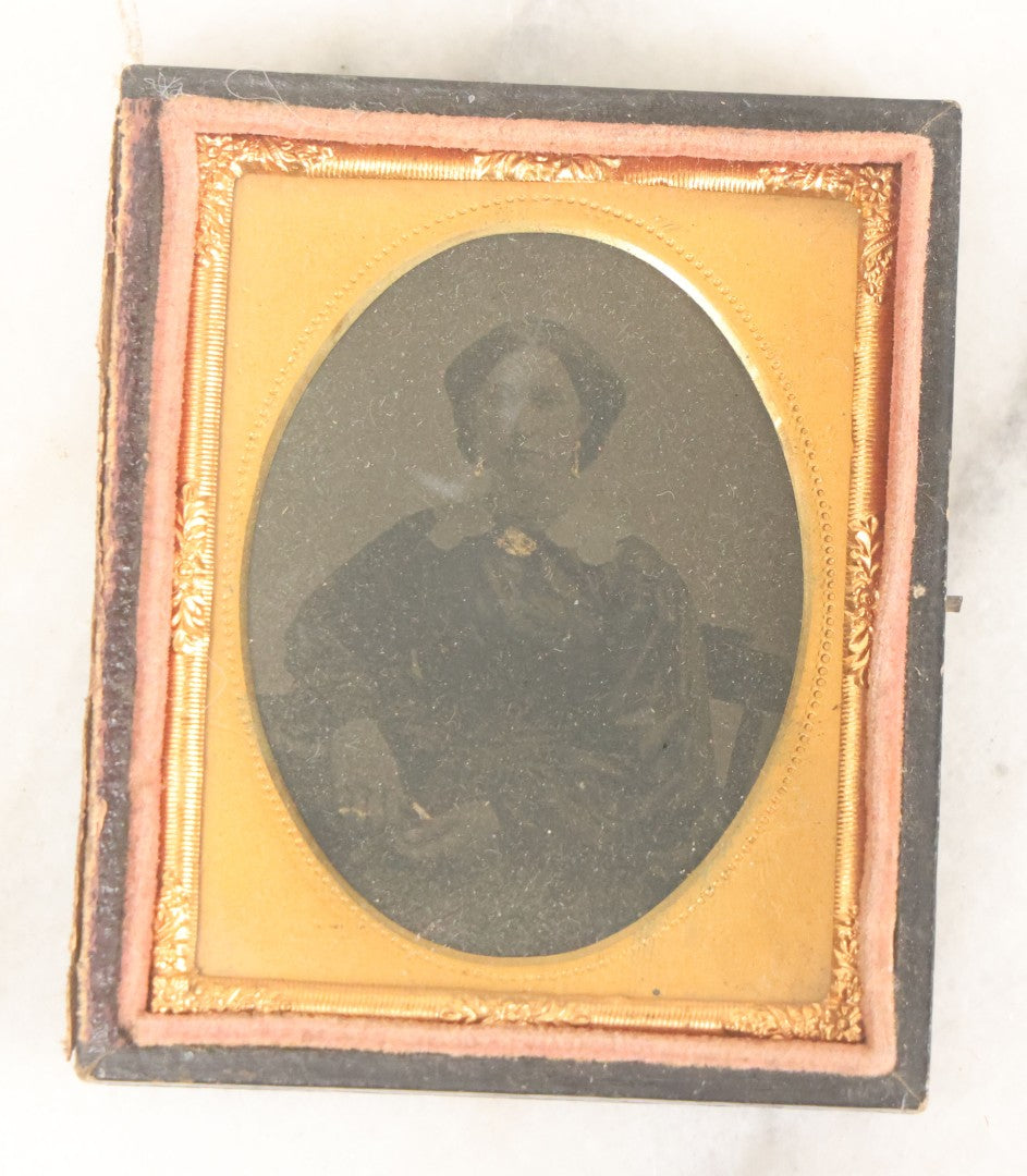 Lot 071 - Pair Of Antique 1/9th Plate Cased Images Including Hidden Mother Ruby Ambrotype With Young Child And Very Dark Tintype Of A Woman, In Half Leatherette Union Cases