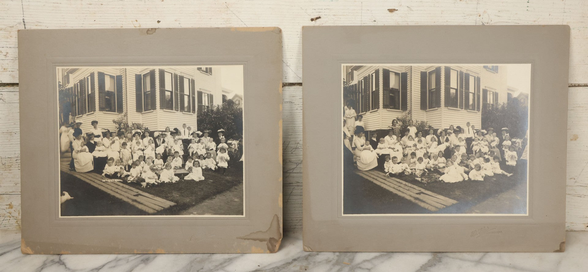 Lot 063 - Pair Of Antique Boarded Photographs Of Mothers And Their Toddlers Posing In Front Of A Home