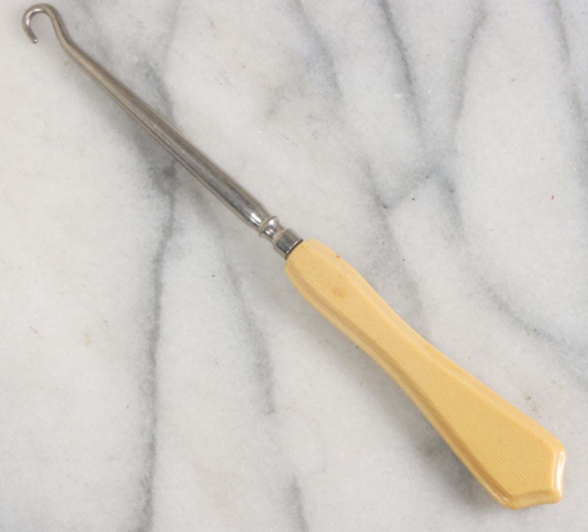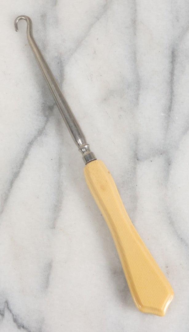 Lot 095 - Pair Of Antique Celluloid Dresser Items, Including Baby Comb With Painted Bluebird And Corset Hook