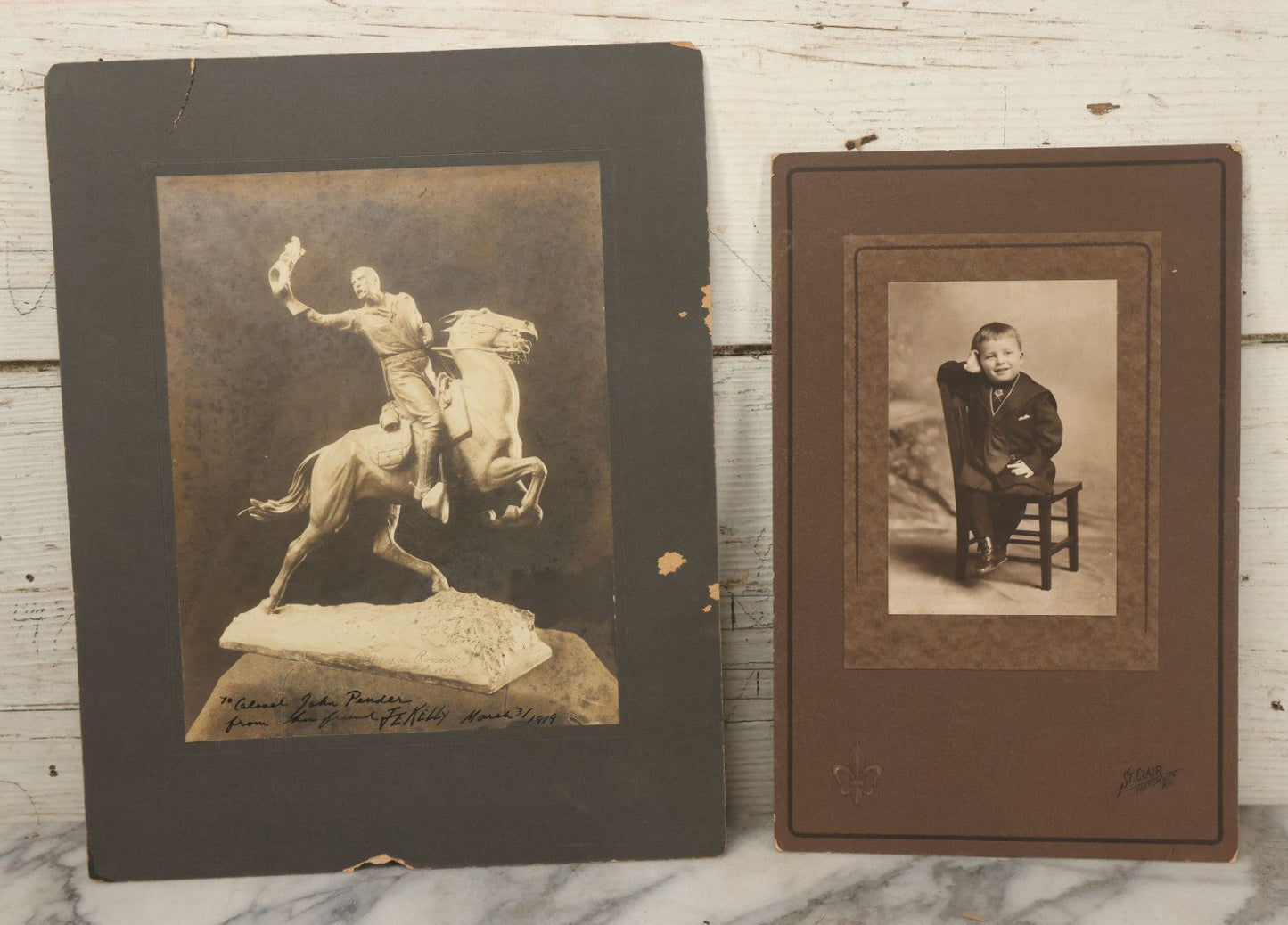 Lot 067 - Pair Of Antique Photographs Relating To The Pender Family, Including Statue Of Teddy Roosevelt Gifted To Colonel John Pender, And A Photograph Of Young Wyman Pender Boynton