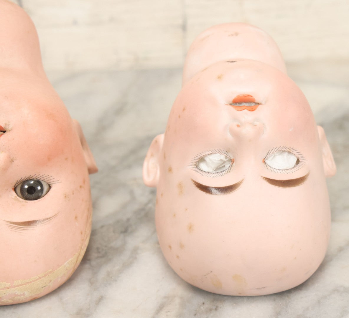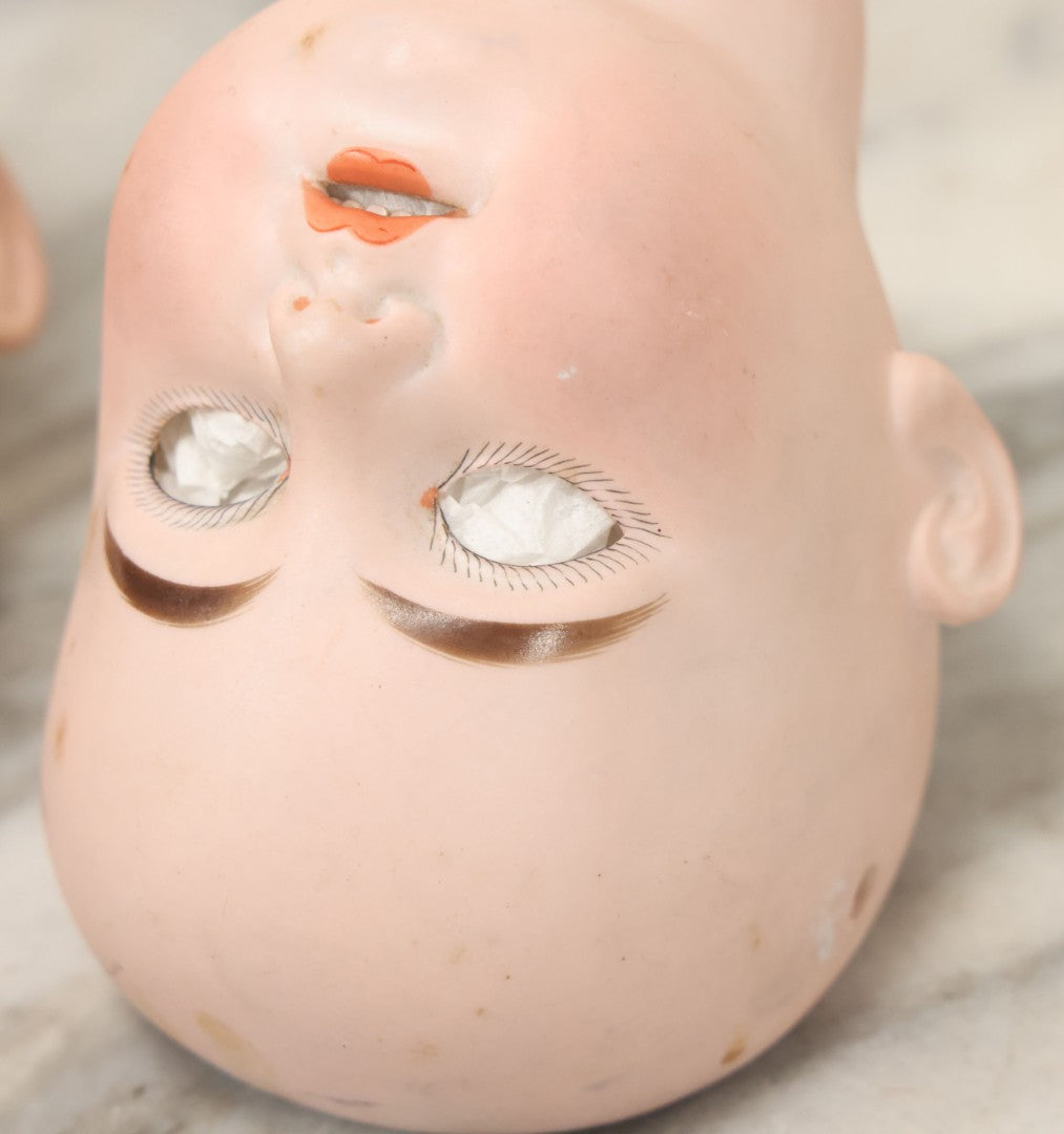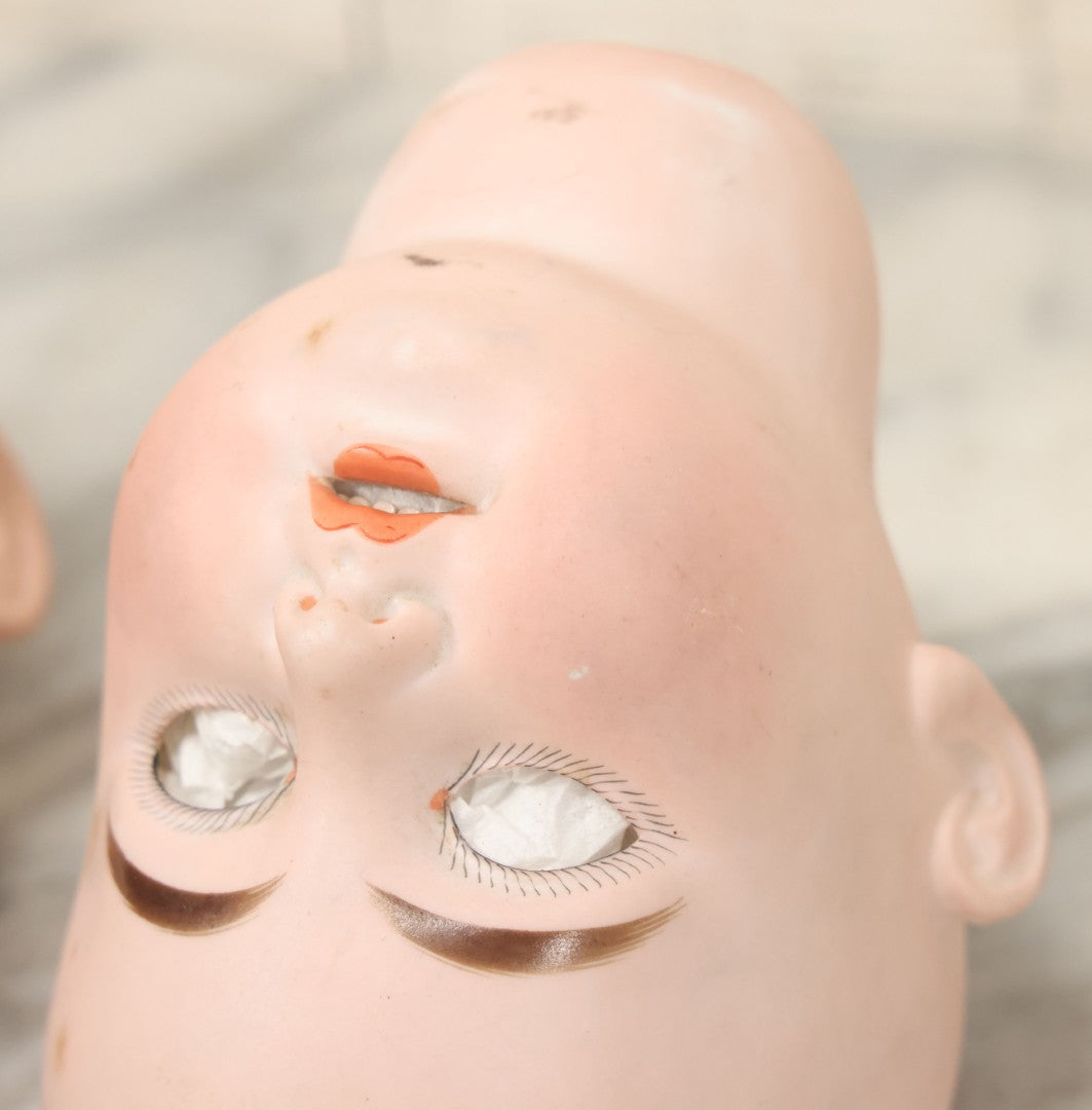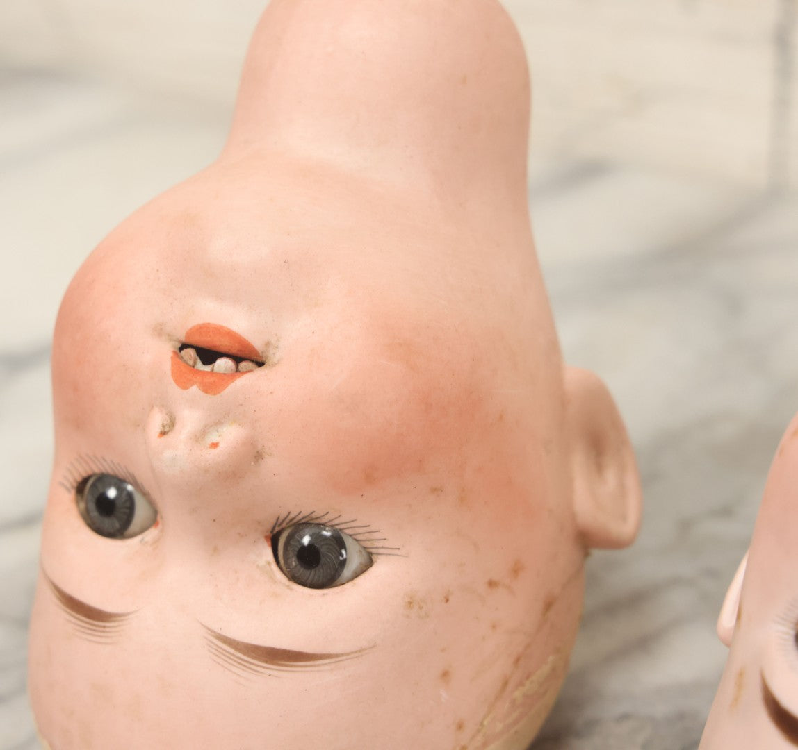Lot 064 - Pair Of Antique Porcelain Doll Heads With Glass Eyes, Note Cracks, Missing Parts, And Age Wear, Armand Marseille 1894 & Limbach Wally