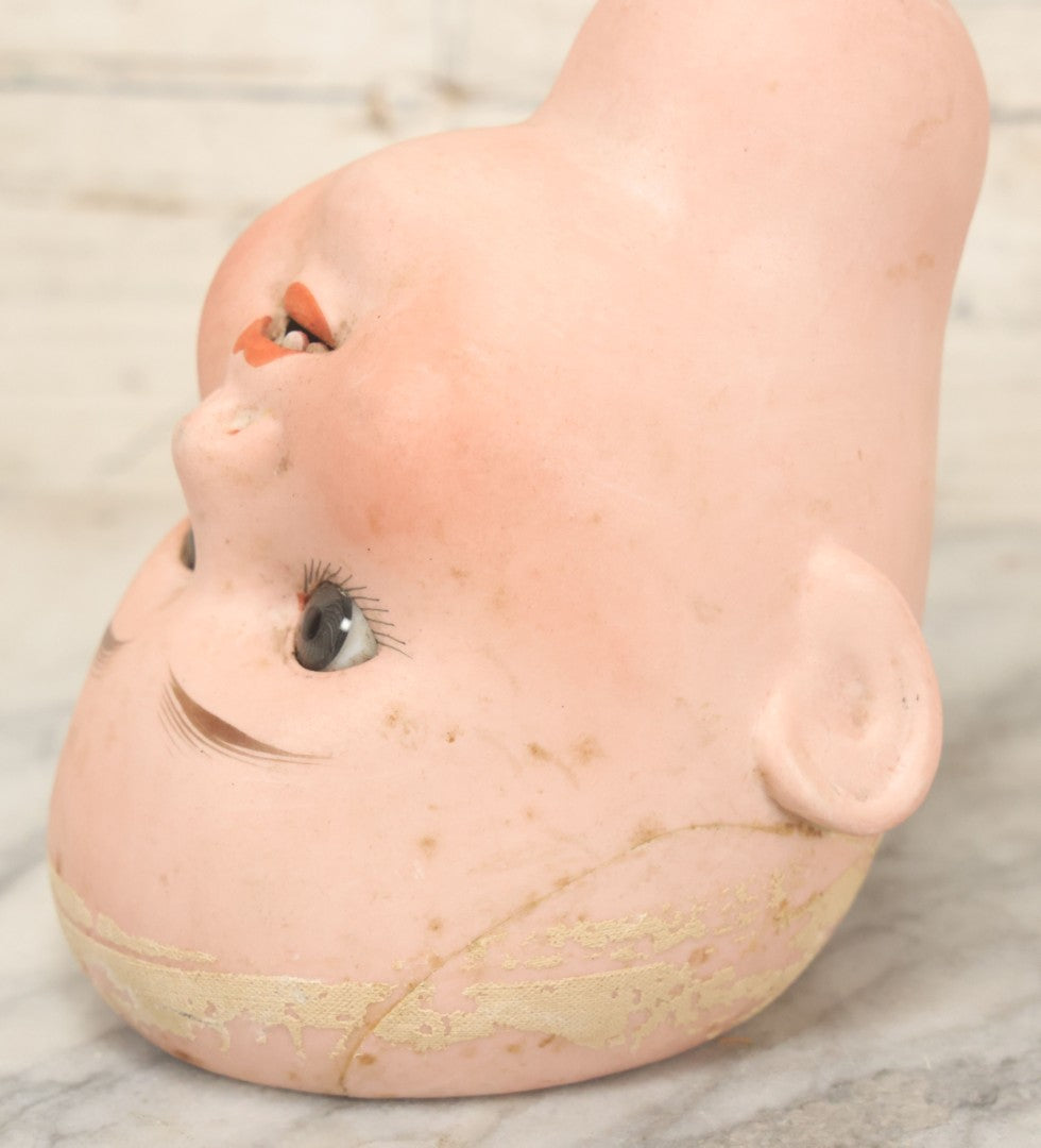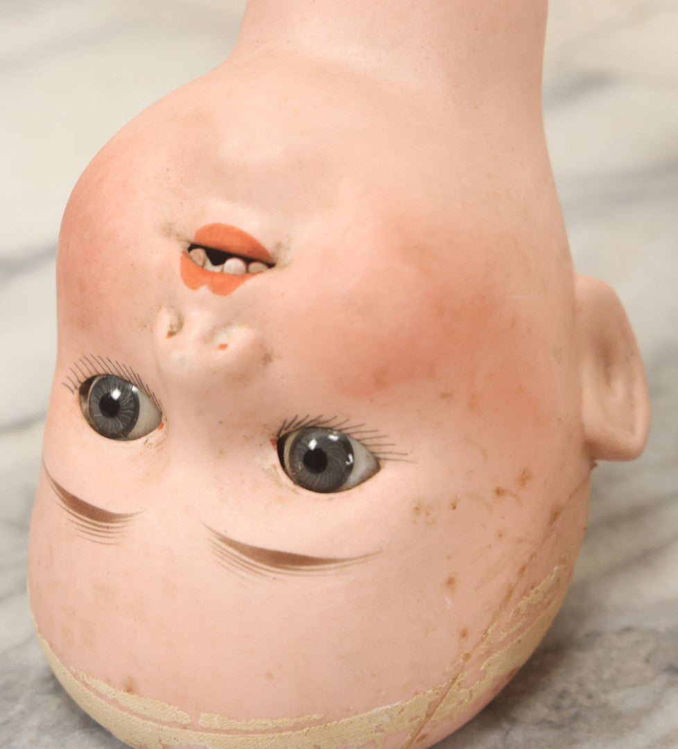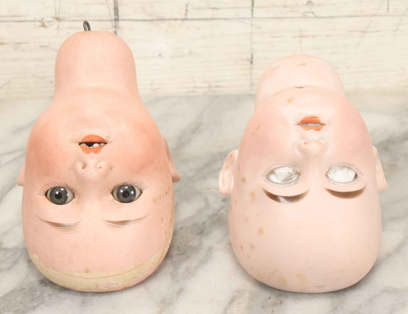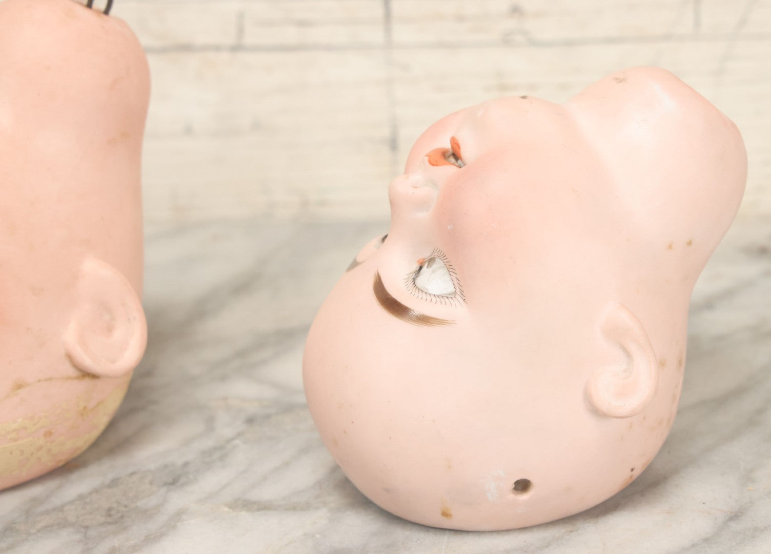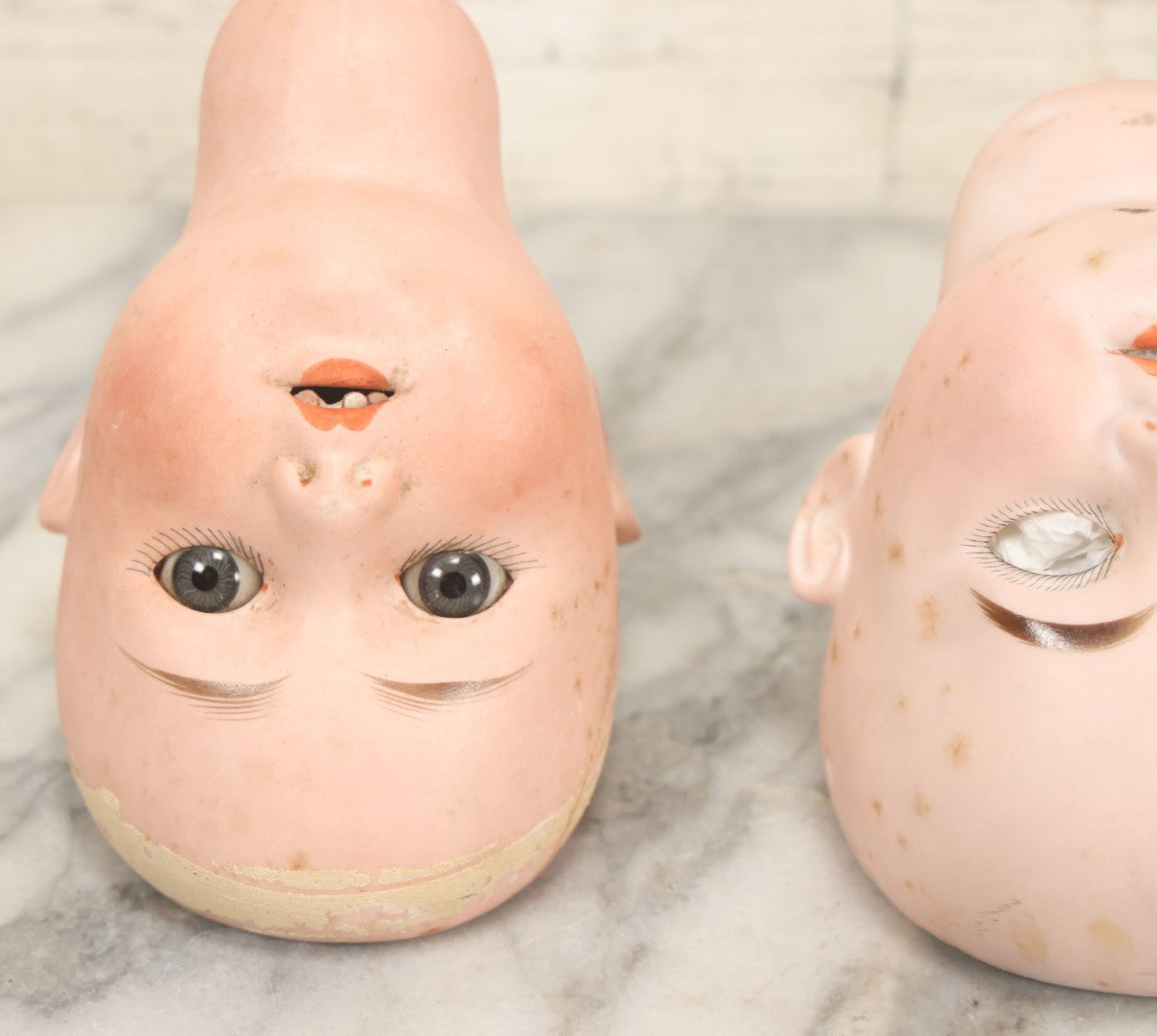 Lot 064 - Pair Of Antique Porcelain Doll Heads With Glass Eyes, Note Cracks, Missing Parts, And Age Wear, Armand Marseille 1894 & Limbach Wally