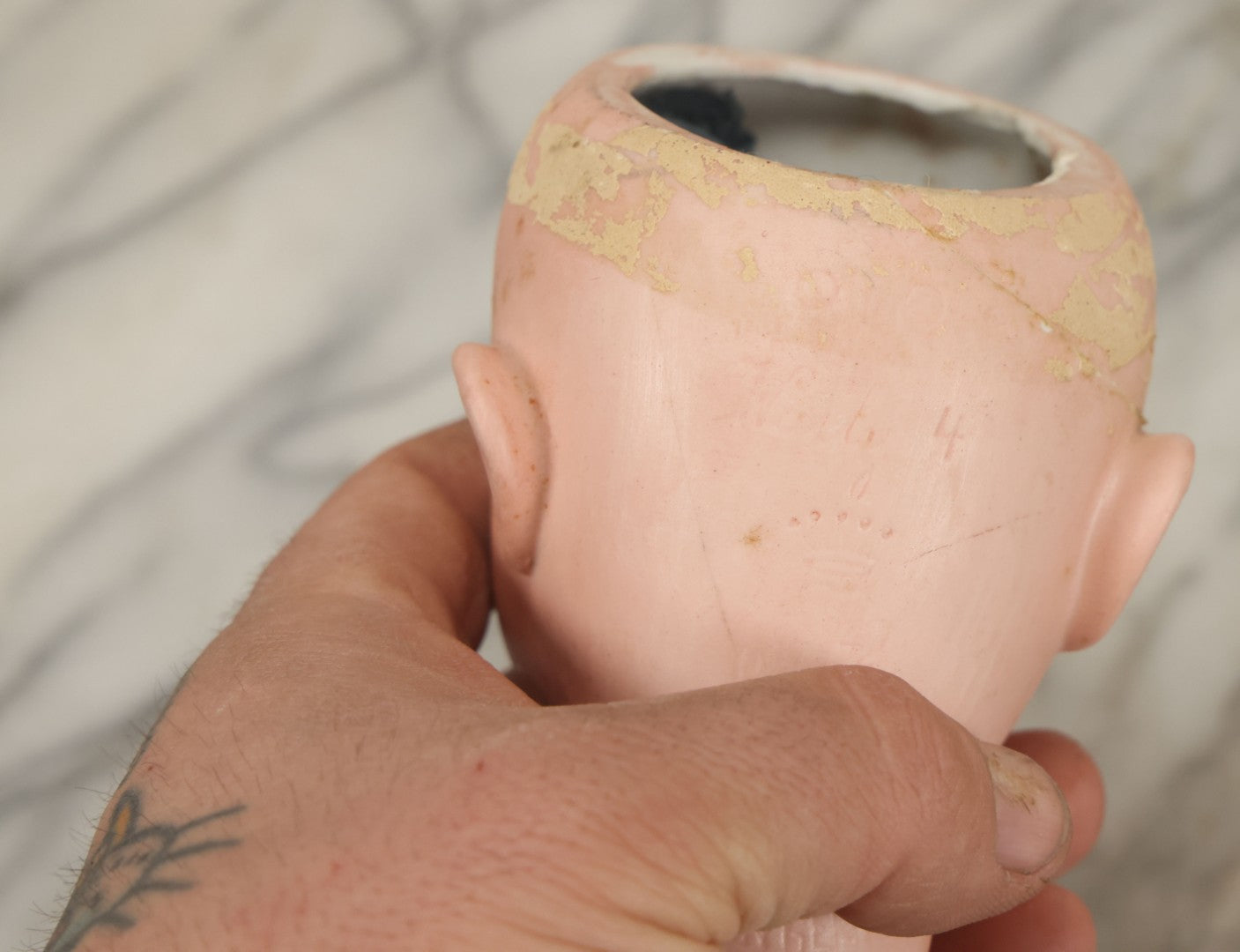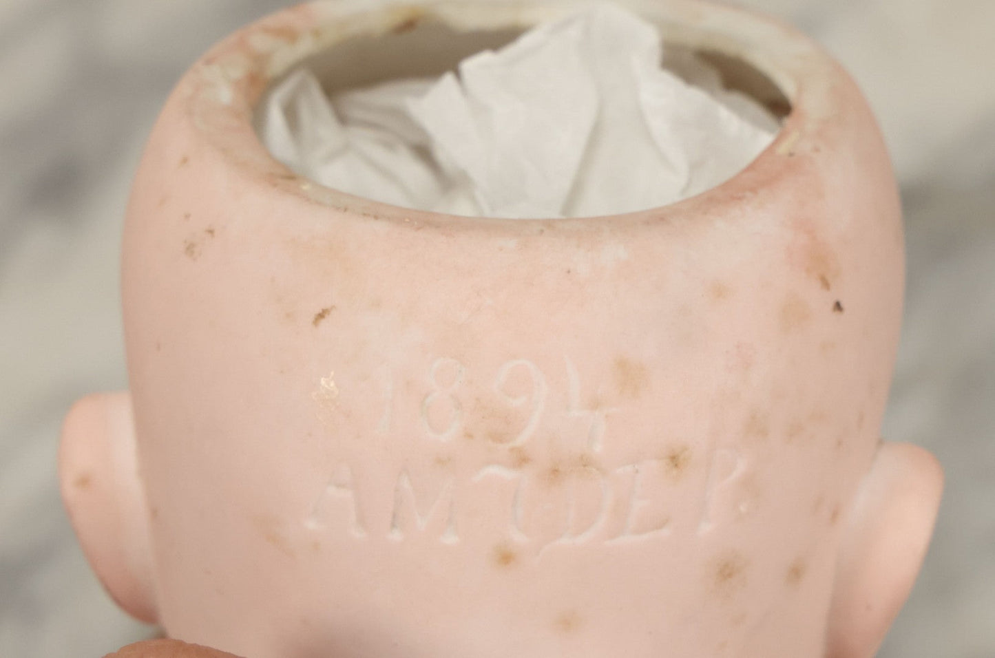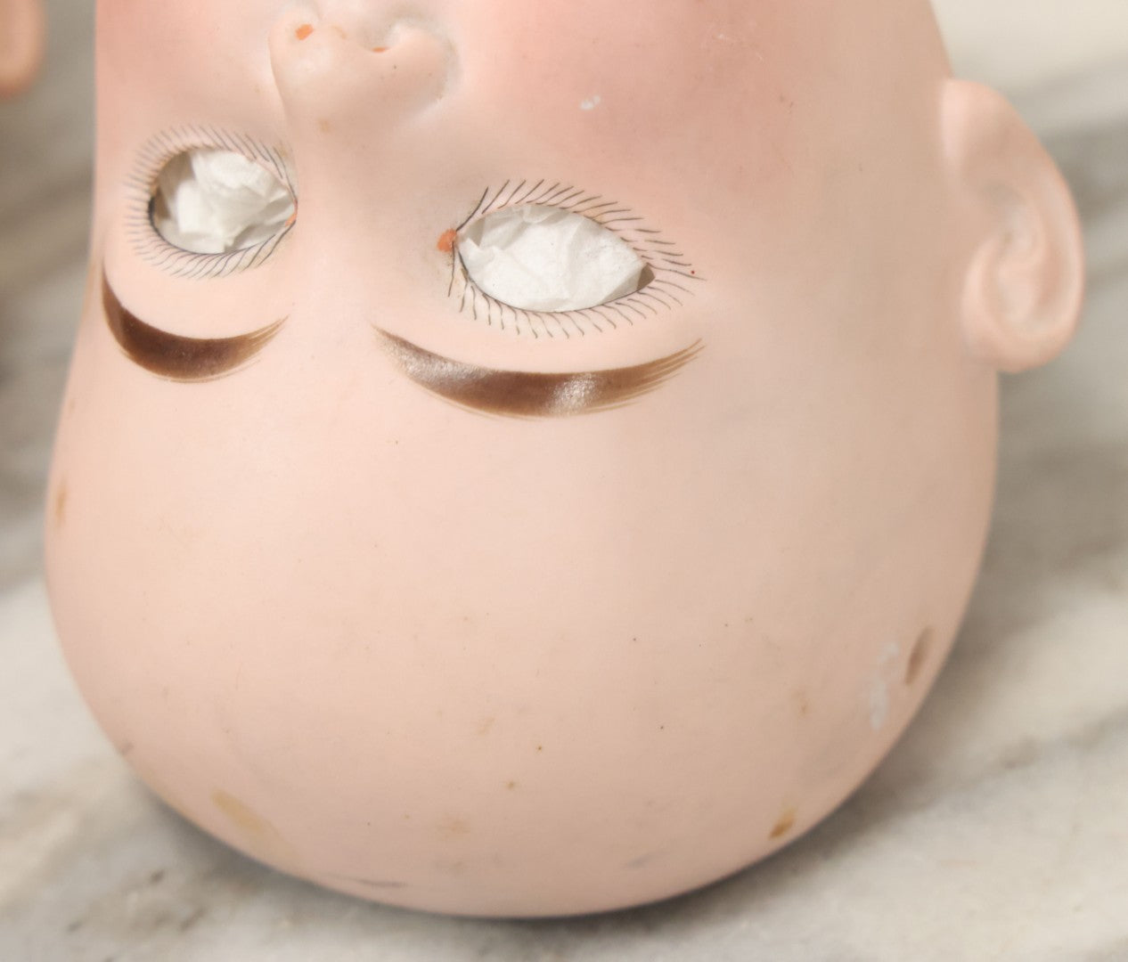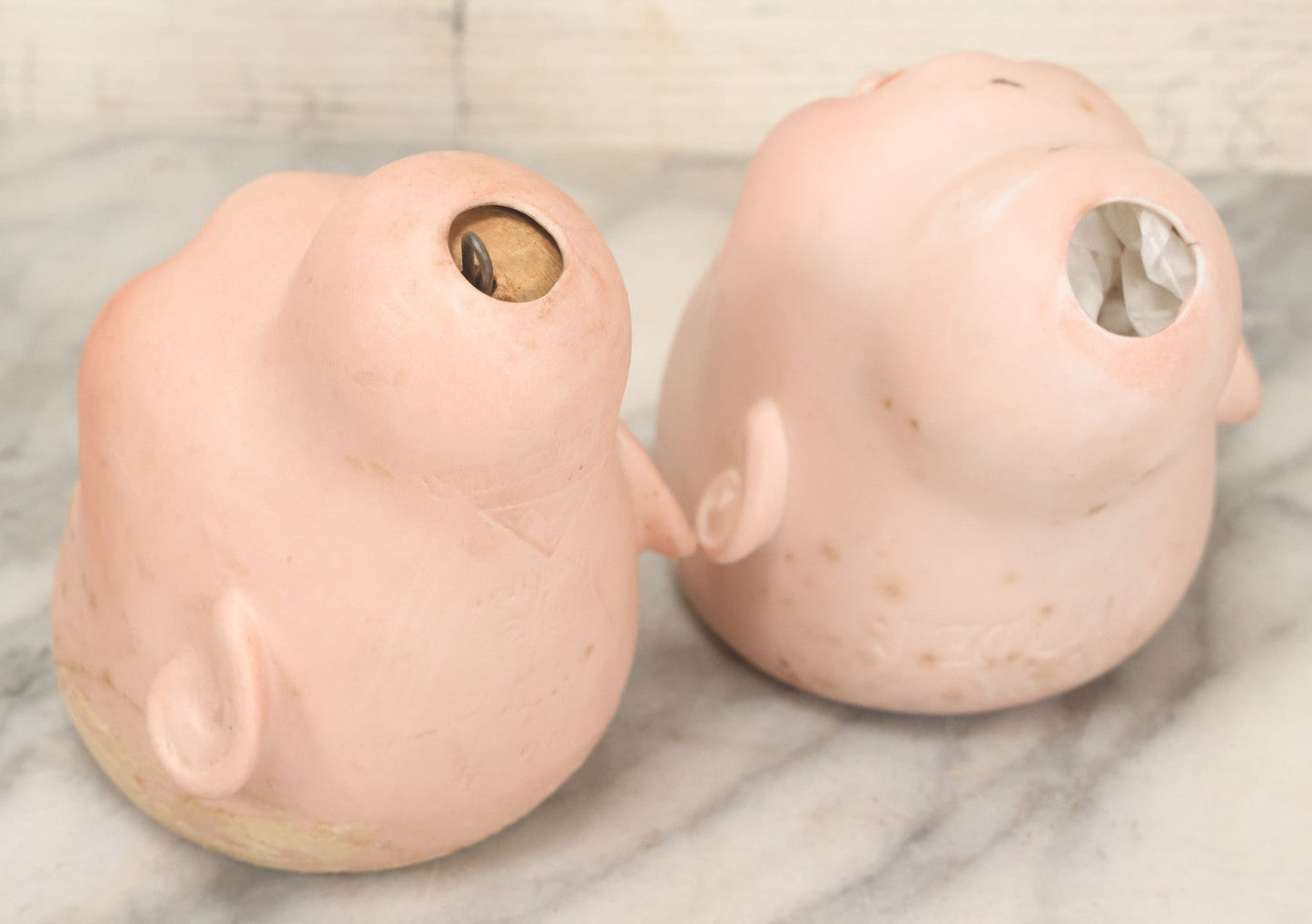 Lot 064 - Pair Of Antique Porcelain Doll Heads With Glass Eyes, Note Cracks, Missing Parts, And Age Wear, Armand Marseille 1894 & Limbach Wally