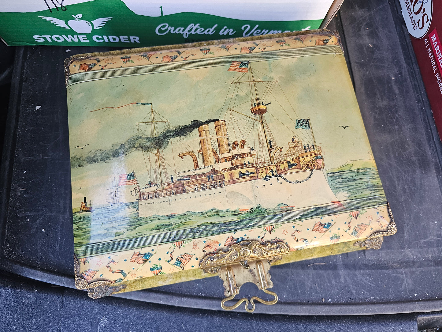 Remember The Maine Antique Spanish American War Celluloid Photo Album - Empty - Fair Condition - Music Box Needs Restored