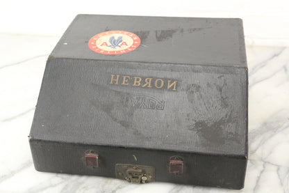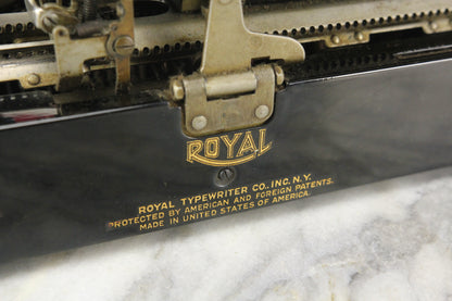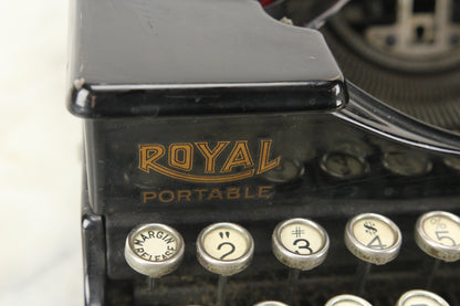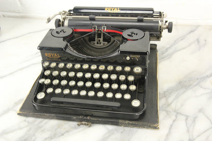 Here is a stunning antique Royal Portable Model "P" portable manual typewriter. It was manufactured in the United States of America in 1927 by the Royal Typewriter Co. Inc. out of New York. This typewriter types smoothly and snappy and includes a brand new black and red ink ribbon per-installed. In addition to being fully functional, this typewriter is in great cosmetic condition with very little wear in the paint. There is a scratch, which has been painted over, on the top left of the typewriter by the ribbon spool. This typewriter includes the original carrying case, though the case is missing its handle.